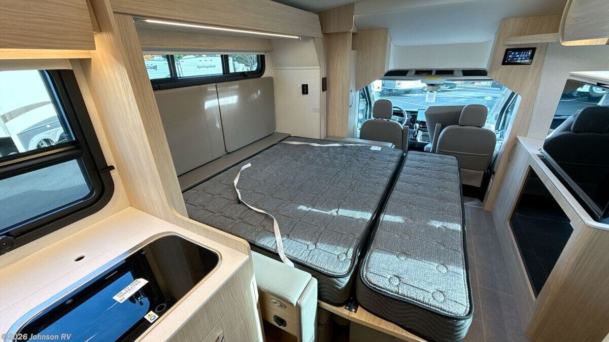 Discover the 2025 Leisure Travel Vans Wonder - 24MBL, a luxurious Class C RV designed to enhance every aspect of your journeys. This RV is built on the robust Ford Transit Dual Rear Wheel Chassis with an optional Intelligent All-Wheel Drive (AWD) for those who crave adventure. Powered by a 3.5L V6 EcoBoost Gas Engine delivering 310 HP and 400 lb-ft of torque, you're assured power and reliability. The 10-speed automatic SelectShift transmission, along with Tow-Haul Mode, ensures smooth and efficient drives. Enjoy peace of mind with features such as a 4-Wheel Anti-Lock Braking System, Electric Power Assist Steering, and Side Wind Stabilization. Emphasizing safety and security, the Leisure Travel Vans Wonder comes equipped with: - Ford Co-Pilot 360 System - Automatic Emergency Braking and Forward Collision Warning - Adaptive Cruise Control and Lane-Keeping Assist - Post-Collision Braking and SOS Post-Crash Alert System - A range of other security features including Remote Start and the Securilock Passive Anti-Theft Engine Immobilizer The cab is designed for comfort and control with: - Ultraleather Swivel Recline Cab Seats featuring adjustable lumbar support - Multifunction Leather-Wrapped Steering with tilt and telescoping features - A 12-inch multimedia color touchscreen equipped with SYNC 4, Apple CarPlay, and Android Auto Step inside the living space to find a thoughtfully designed interior with modern amenities: - Tile-look vinyl flooring and LED dimmable aisle lighting - Curved overhead cabinets with soft-close doors - Awning-style windows with roller shades for added privacy The dining area includes: - A Flex-Seating Dinette and Slideout with Leisure Lounge Dinette options - Corian countertops with a stainless steel undermount sink - LP cooktop with a hinged glass cover and convection microwave oven For restful nights, enjoy the comfort of: - Rear convertible twin beds measuring 32x74 The bathroom features elegance and functionality: - A curved glass shower door and a ceramic macerator toilet - Integrated shower storage and retractable self-cleaning screen - Medicine cabinet and power fan This RV is ready for the road with a suite of mechanical systems designed for off-grid capabilities: - 270Ah 12v Smart Lithium Battery with internal heating - Auto-start 4.0 Gas Generator and 3000w Pure Sine Inverter - Truma AquaGo Comfort Plus Hot Water and Truma Aventa Eco AC The coach build offers resilience and convenience: - Vacuum-bonded aluminum frame with fiberglass exterior - Lighted storage compartments and pass-through garage with a slide - Insulated domed fiberglass roof for optimal temperature control Whether you're navigating cityscapes or exploring nature’s vastness, the 2025 Leisure Travel Vans Wonder 24MBL provides the ultimate balance of luxury, comfort, and advanced technology to make every journey memorable. ???