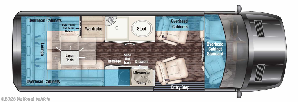 Multiple 120V outlets, USB/12V charging stations, overhead courtesy lighting