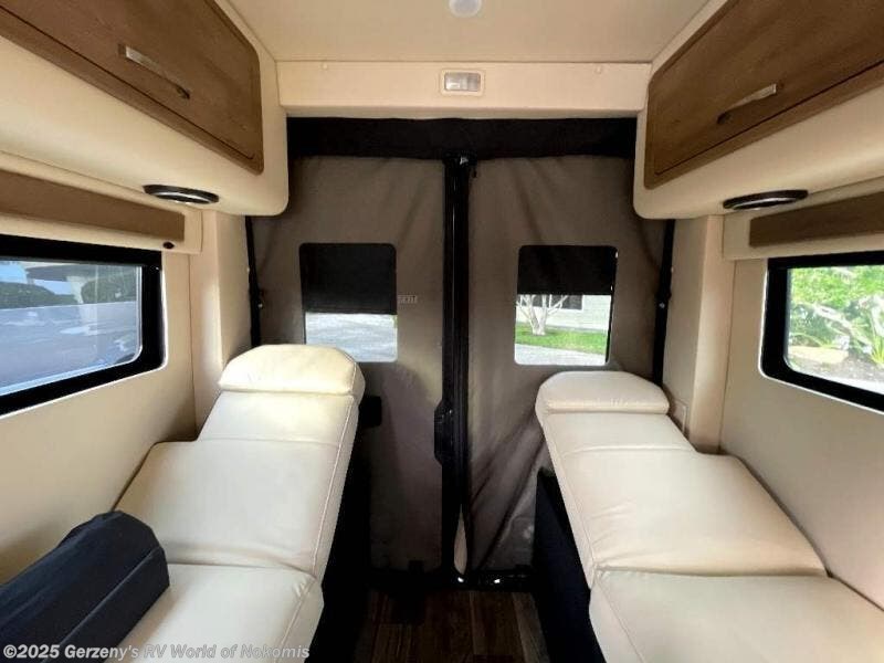 The Legend Class B gas motorhome by Midwest Automotive Designs offers a Ram ProMaster chassis, an exterior shower, a rear hitch with a wiring package if you need to pull a trailer or such, and a rear back-up camera system for easy parking. Inside you can ride and stay in luxury on the deluxe seating recover, plus there is composite seamless flooring, solid surface countertops, and a complete privacy shade package for added convenience. The optional Freedom 600 Package can be added that includes 320 watts of solar power, a Timberline gas and electric powered furnace, and a 3,000W inverter to name a few features. An optional Space-X STARLINK satellite system can also be added, along with an optional roof rack with a ladder and/or an optional wireless internet router and Apple TV!