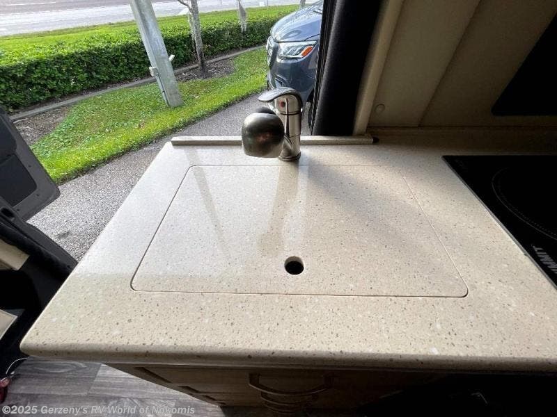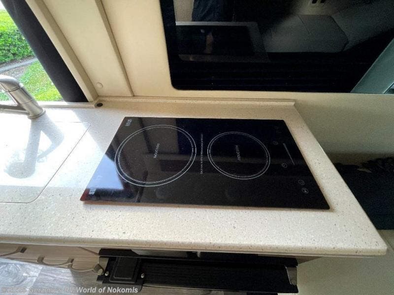 You'll love every minute spent in this cozy coach for two! When you wake up, you can make breakfast in the convection microwave or on the induction cooktop, and the power rear lounge will provide a comfortable place to relax. And the removable table/dinette will allow you to eat a meal or do some work while sitting comfortably on the leather seating. There is a mid-coach wet bath to stay refreshed and ready for whatever you decide to do next, and the wardrobe will keep your clothes organized. This model also includes overhead cabinets for even more storage plus drawers under the kitchen counter for kitchen necessities!