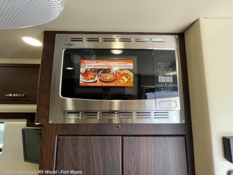 Start traveling like you are driving an SUV yet you will have your own bedding for two to three people once the rear power lounge is set up with the two side sofas for the night. You can watch a movie on the Samsung HD LED Smart TV when you wake up before making breakfast in the convection microwave or on the induction cooktop. You might like to grab a snack from the overhead cabinets instead. And the removable table/dinette will allow you to eat a meal or do some work while sitting comfortably on the leather seating. There is a mid-coach wet bath to stay refreshed and ready for whatever you decide to do next! You might even like to add the Onan 2.2 propane generator option for extra power.
