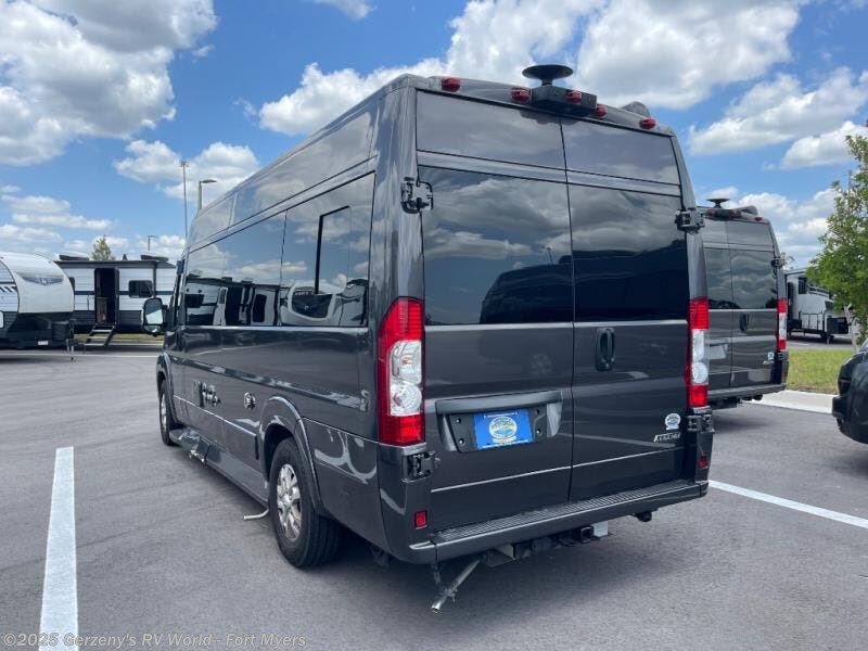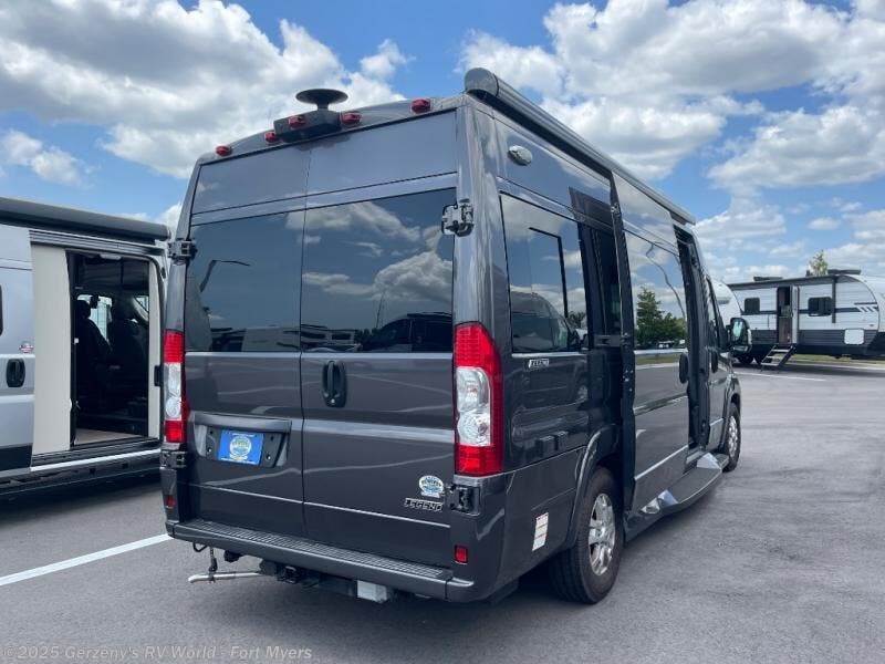 Each Legend Class B gas motorhome by Midwest Automotive Designs offers a Ram ProMaster chassis, a ECO charging system, a 100 watt rooftop solar charging system, a rear hitch with a wiring package if you need to pull a trailer or such, and a rear back-up camera system for easy parking. Inside you can ride and stay in luxury on leather seating while appreciating the custom dash and door handle wood grain upgrade, the custom Maybach style seating with seat belts, and the kitchen amenities to make warm meals. Start traveling today in your own Legend!