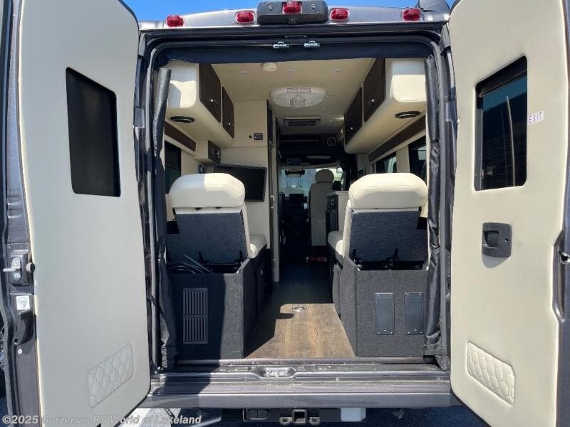 Each Legend Class B gas motorhome by Midwest Automotive Designs offers a Ram ProMaster chassis, a ECO charging system, a 100 watt rooftop solar charging system, a rear hitch with a wiring package if you need to pull a trailer or such, and a rear back-up camera system for easy parking. Inside you can ride and stay in luxury on leather seating while appreciating the custom dash and door handle wood grain upgrade, the custom Maybach style seating with seat belts, and the kitchen amenities to make warm meals. Start traveling today in your own Legend!
