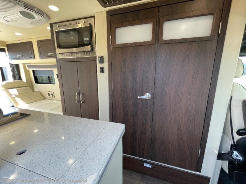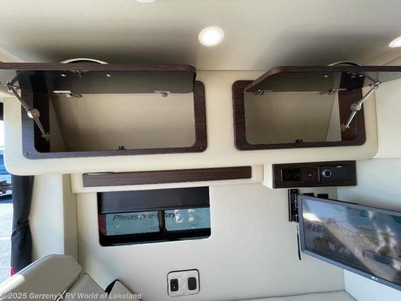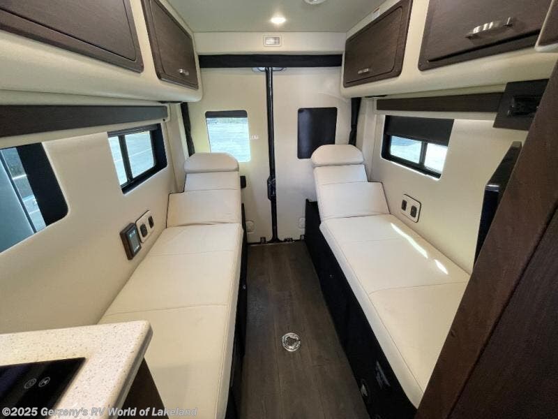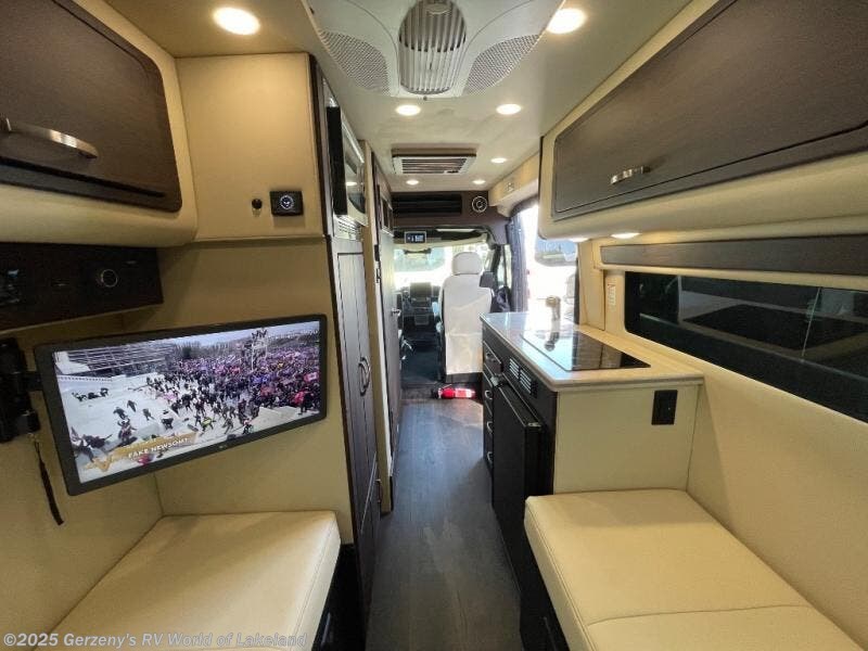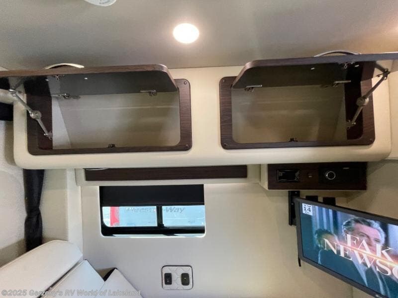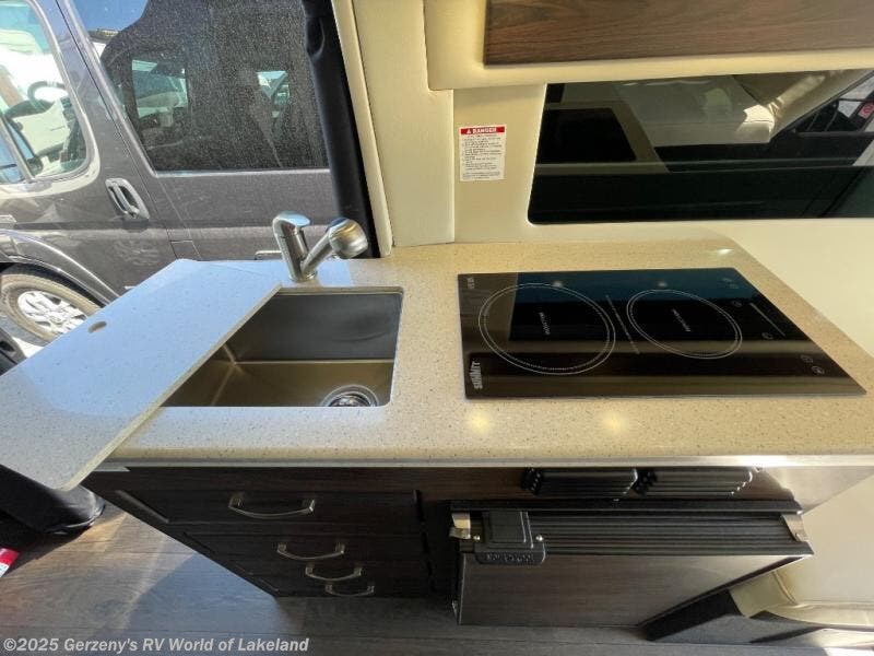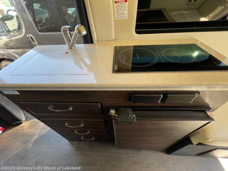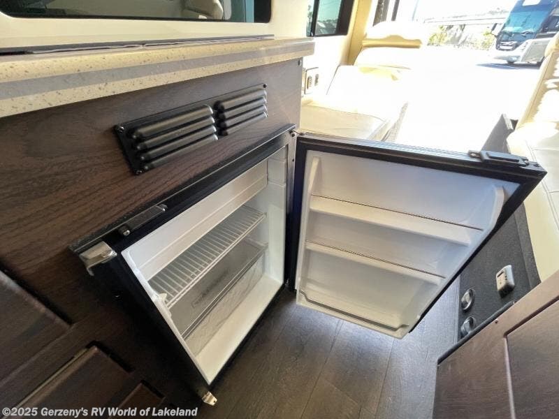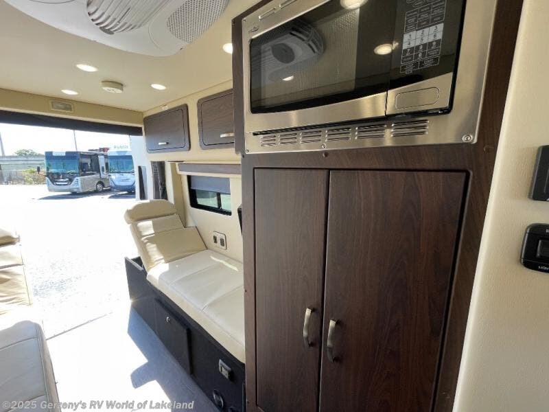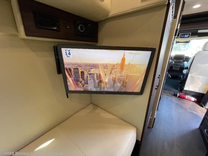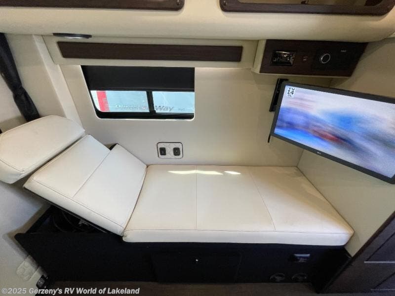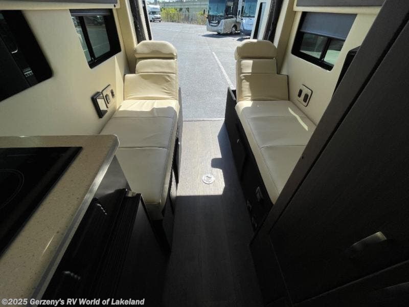 Start traveling like you are driving an SUV yet you will have your own bedding for two to three people once the rear power lounge is set up with the two side sofas for the night. You can watch a movie on the Samsung HD LED Smart TV when you wake up before making breakfast in the convection microwave or on the induction cooktop. You might like to grab a snack from the overhead cabinets instead. And the removable table/dinette will allow you to eat a meal or do some work while sitting comfortably on the leather seating. There is a mid-coach wet bath to stay refreshed and ready for whatever you decide to do next! You might even like to add the Onan 2.2 propane generator option for extra power.