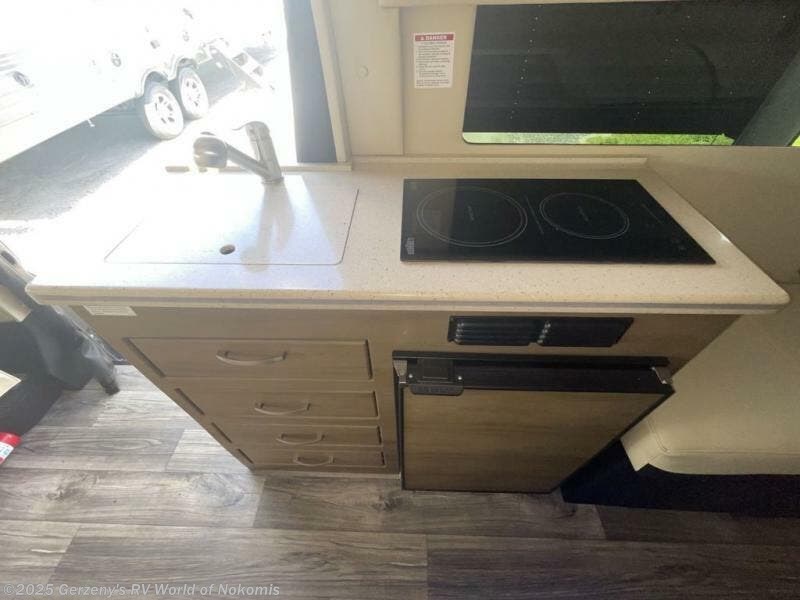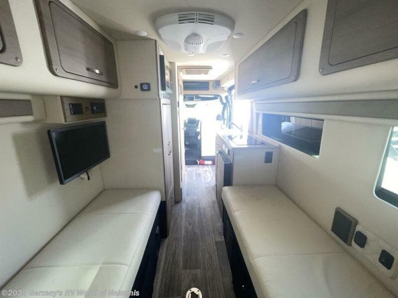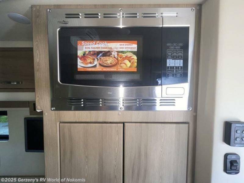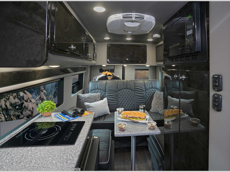 Start traveling like you are driving an SUV yet you will have your own bedding for two to three people once the rear power lounge is set up with the two side sofas for the night. You can watch a movie on the Samsung HD LED Smart TV when you wake up before making breakfast in the convection microwave or on the induction cooktop. You might like to grab a snack from the overhead cabinets instead. And the removable table/dinette will allow you to eat a meal or do some work while sitting comfortably on the leather seating. There is a mid-coach wet bath to stay refreshed and ready for whatever you decide to do next! You might even like to add the Onan 2.2 propane generator option for extra power.