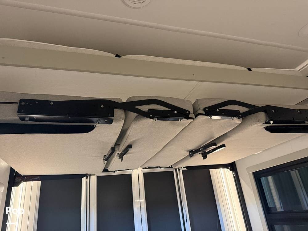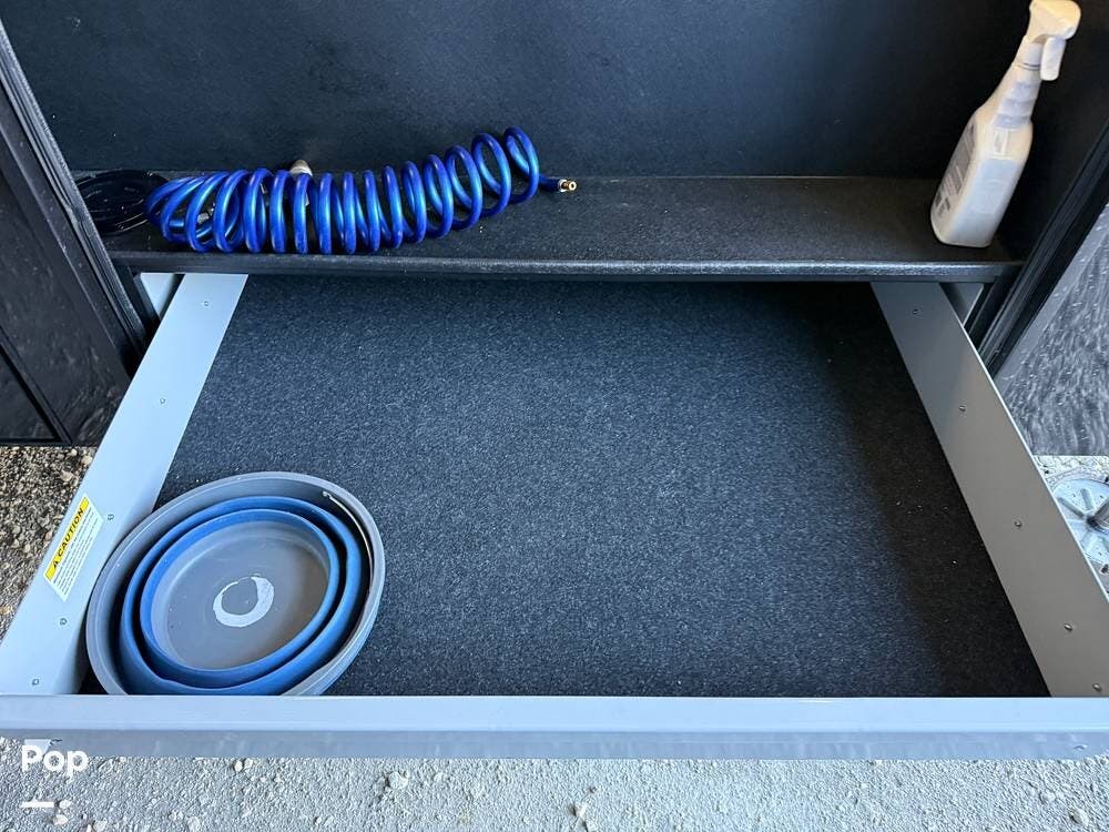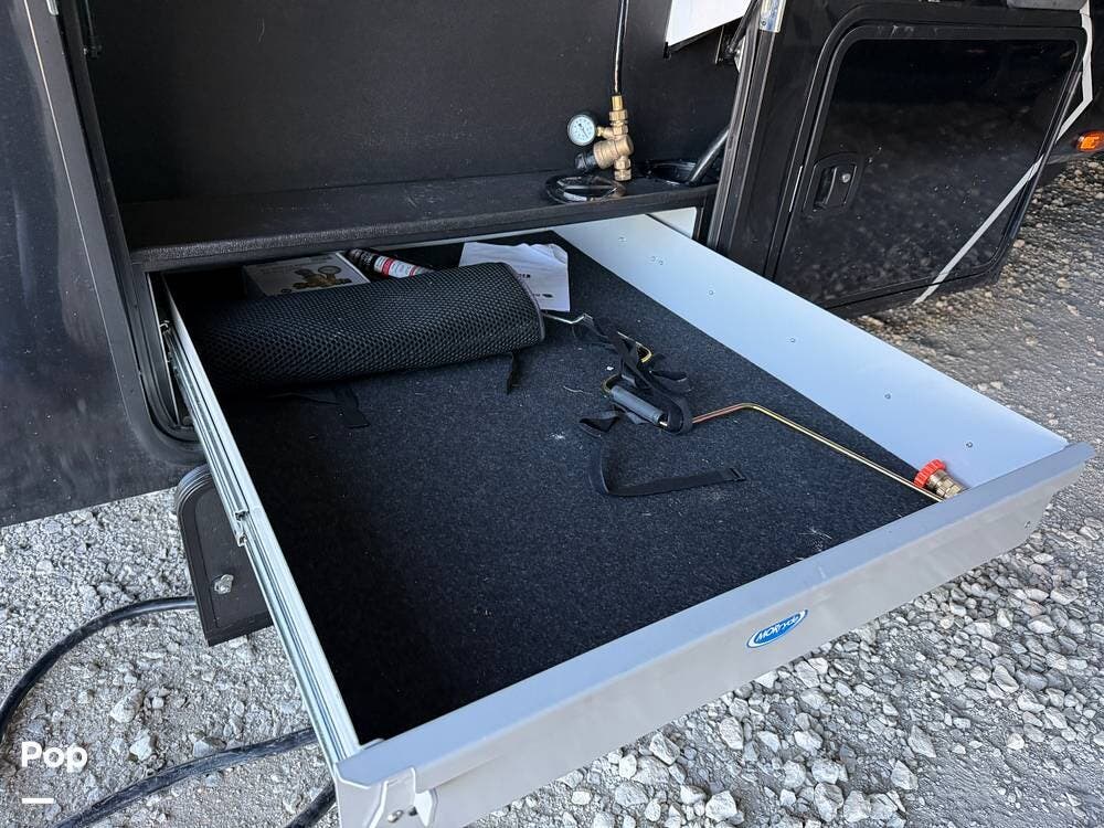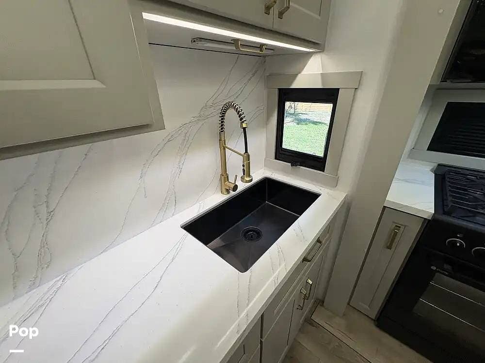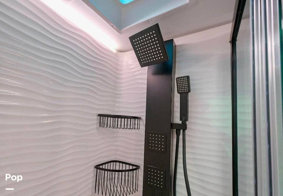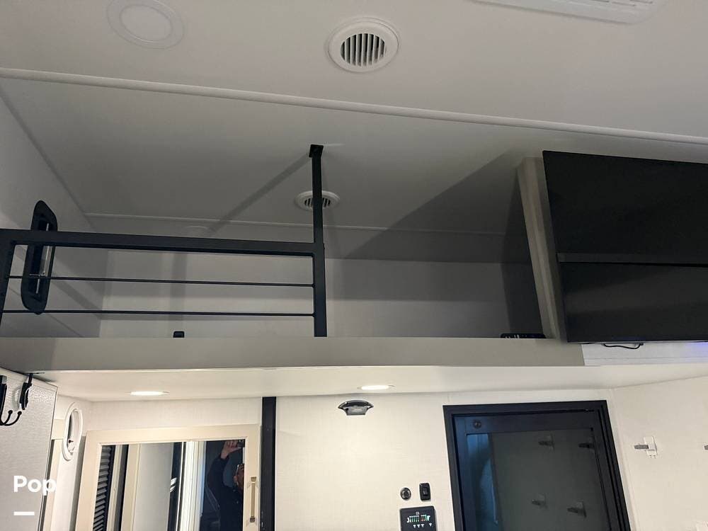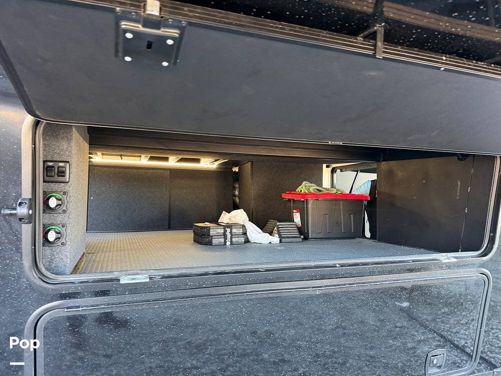 Other creature comforts include Rockford Fosgate audio throughout, motion-activated LED lighting, floating steps, integrated window screens and blackout blinds, residential-style trim, and solid construction and a low-maintenance roof.