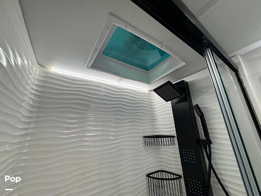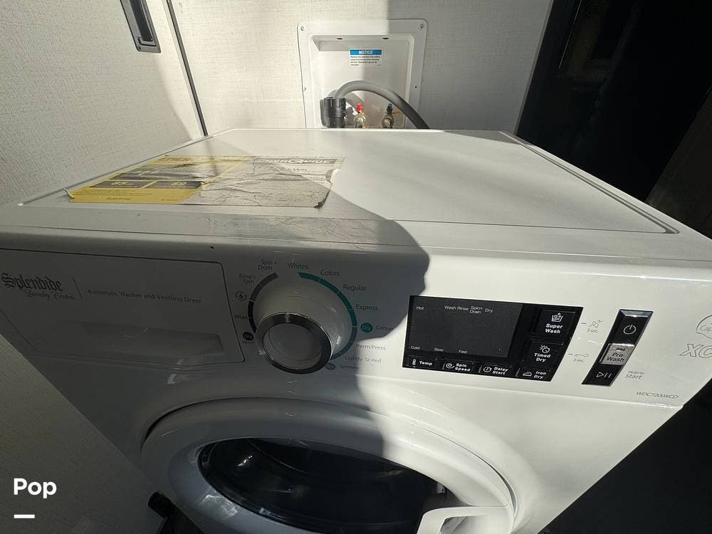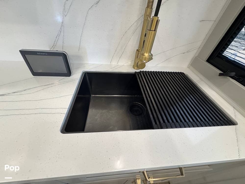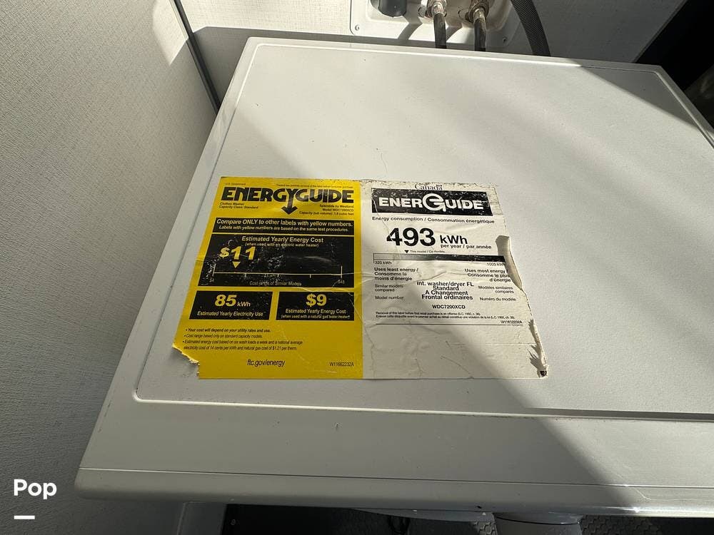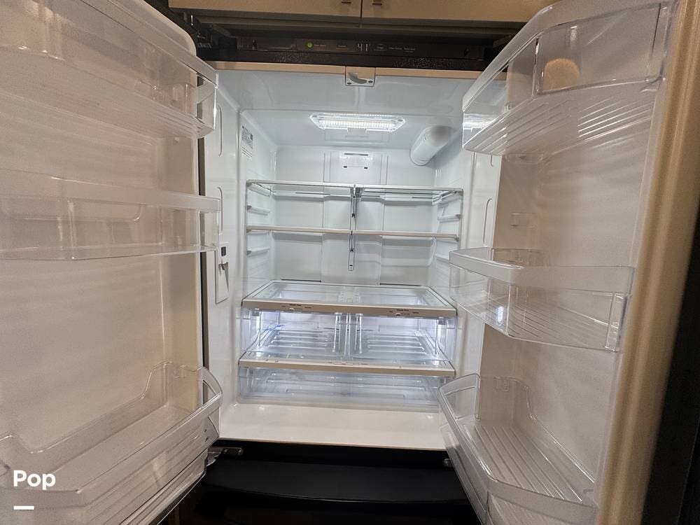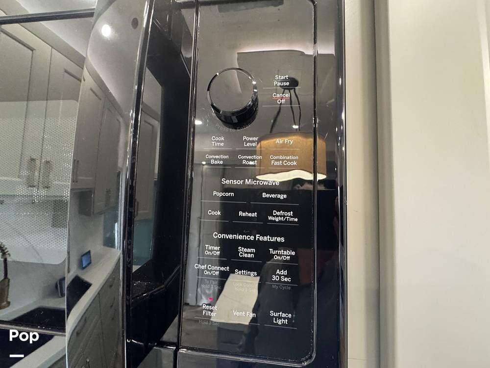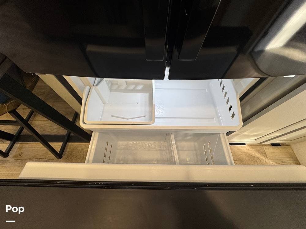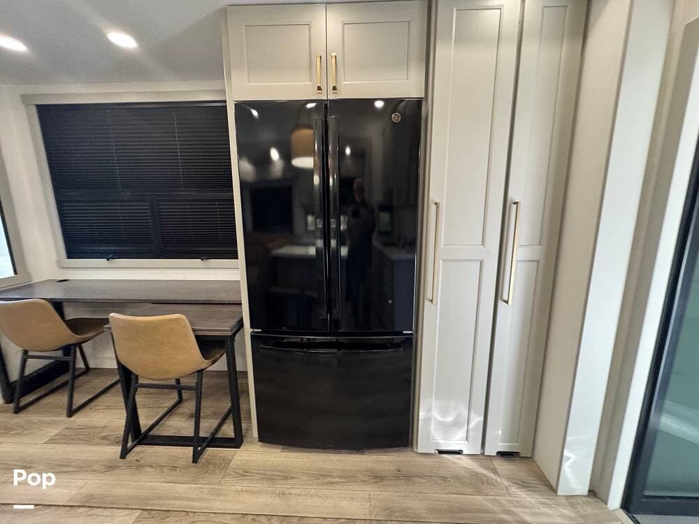 The kitchen brings real home conveniences: a 19 cu. ft. fridge (Energy Star, with ice maker and filtered water), a 4-burner cooktop with oven, convection microwave, and enough for serious meals rather than just convenience food.