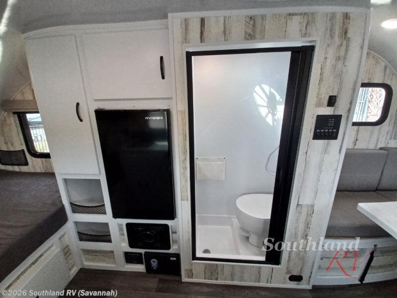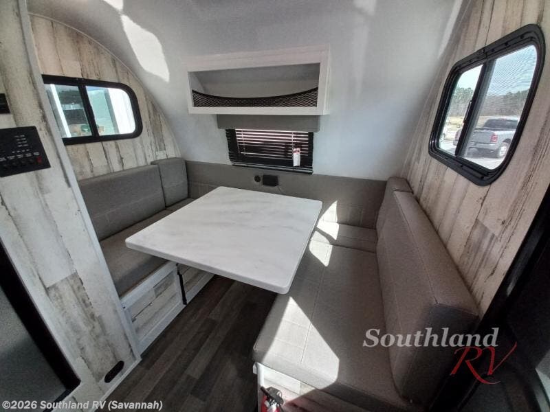If you're looking for a teardrop trailer with a little more sleeping space, check out this Big Buggy BB16! There is a front U-shaped dinette that can convert to cozy sleeping space, along with a 78" x 36" upper bunk, a two burner stove, and a large refrigerator for food. You can clean up each day in the wet bath that includes a two way bath vent fan plus a Dometic toilet. The exterior baggage door and front exterior baggage door will keep all your gear secure, and the torsion axle will provide smooth towing from home to campground.