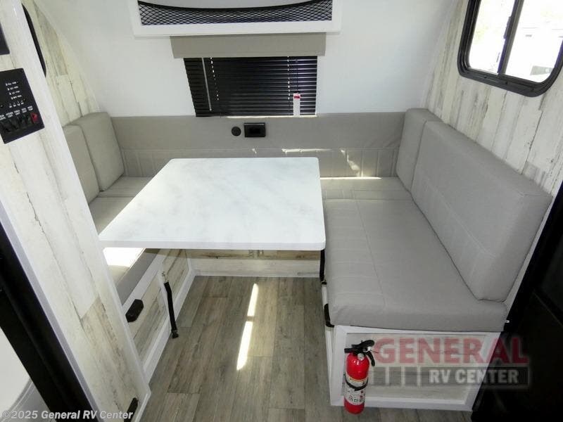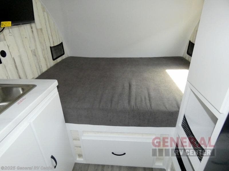 If you're looking for a teardrop trailer with a little more sleeping space, check out this Big Buggy BB16! There is a front U-shaped dinette that can convert to cozy sleeping space, along with a 78" x 36" upper bunk, a two burner stove, and a large refrigerator for food. You can clean up each day in the wet bath that includes a two way bath vent fan plus a Dometic toilet. The exterior baggage door and front exterior baggage door will keep all your gear secure, and the torsion axle will provide smooth towing from home to campground.