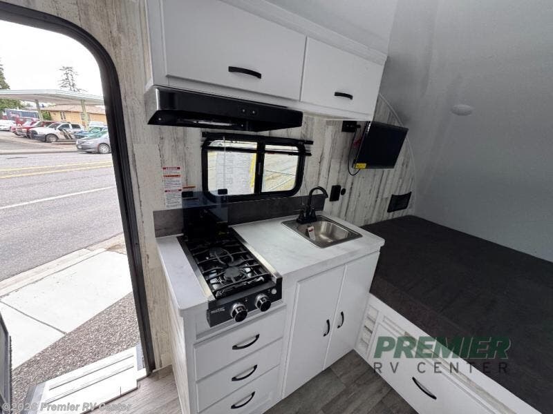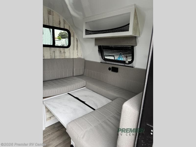 If you're looking for a teardrop trailer with a little more sleeping space, check out this Big Buggy BB16! There is a front U-shaped dinette that can convert to cozy sleeping space, along with a 78" x 36" upper bunk, a two burner stove, and a large refrigerator for food. You can clean up each day in the wet bath that includes a two way bath vent fan plus a Dometic toilet. The exterior baggage door will keep all your gear secure, and the torsion axle will provide smooth towing from home to campground.