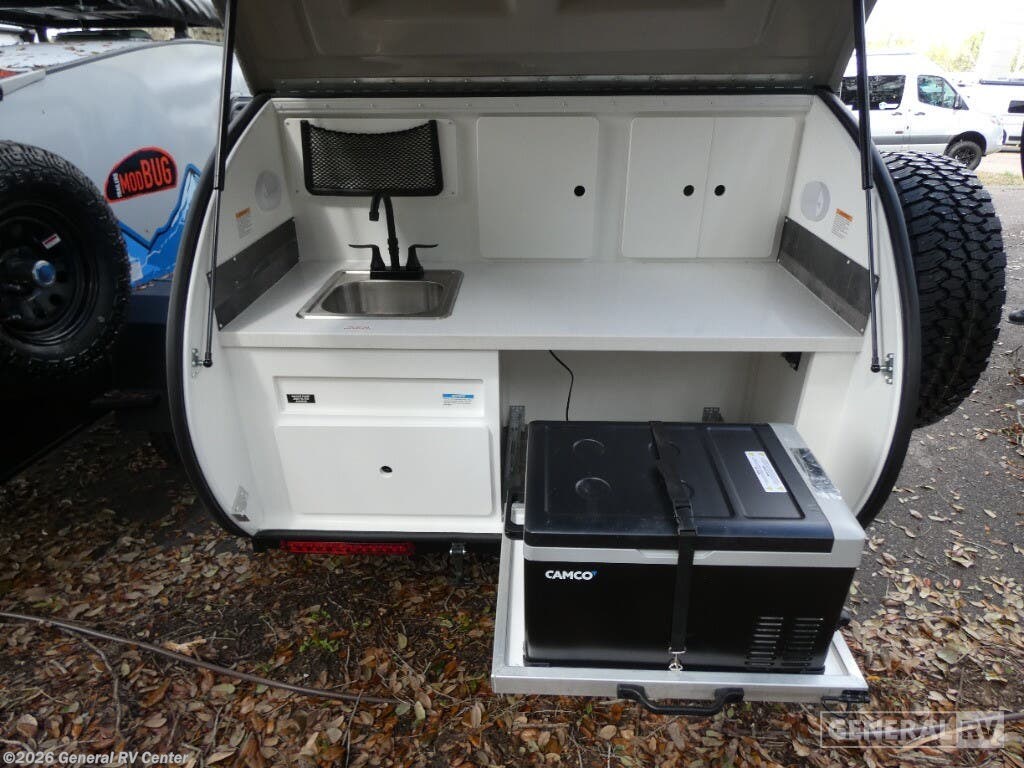 Whether you have a car, small SUV or a larger vehicle, you will be able to tow this Little Buggy off-road and to a local campground, the choices is yours! There is sleeping space for two adults on a memory foam mattress, and storage for your necessities with three cubbies and four enclosed cabinets inside, all built with premium birch wood. More storage can be found in the front exterior box made of steel for either your clothing, dry food or gear. The roof rack allows you to add your rooftop tent, and/or carry your paddle boards, bikes or more camping gear. And the outside galley gives you a place to make meals, place your cooler on the lock-in/lock-out cooler/freezer, and store dishes in the enclosed cabinets, and kitchen cabinets. With the Little Buggy teardrop trailer by Modern Buggy RV, you will have all-terrain tires with 14" ground clearance allowing you to venture on bumpy, muddy and off-the-beaten path roads. Full of modern amenities including LED lights, outlets, and USB charging stations along with LightLeafSolar power green energy to help preserve the places that you love to explore. And the teardrop is built on an industrial strength, high quality custom aluminum frame, and is put together with AZDEL walls and a custom aluminum luggage rack with 600 lbs. of support. Get out and explore today with the Little Buggy that meant to climb on and carry all of your gear for any adventure you dream, and it can be towed behind a car!