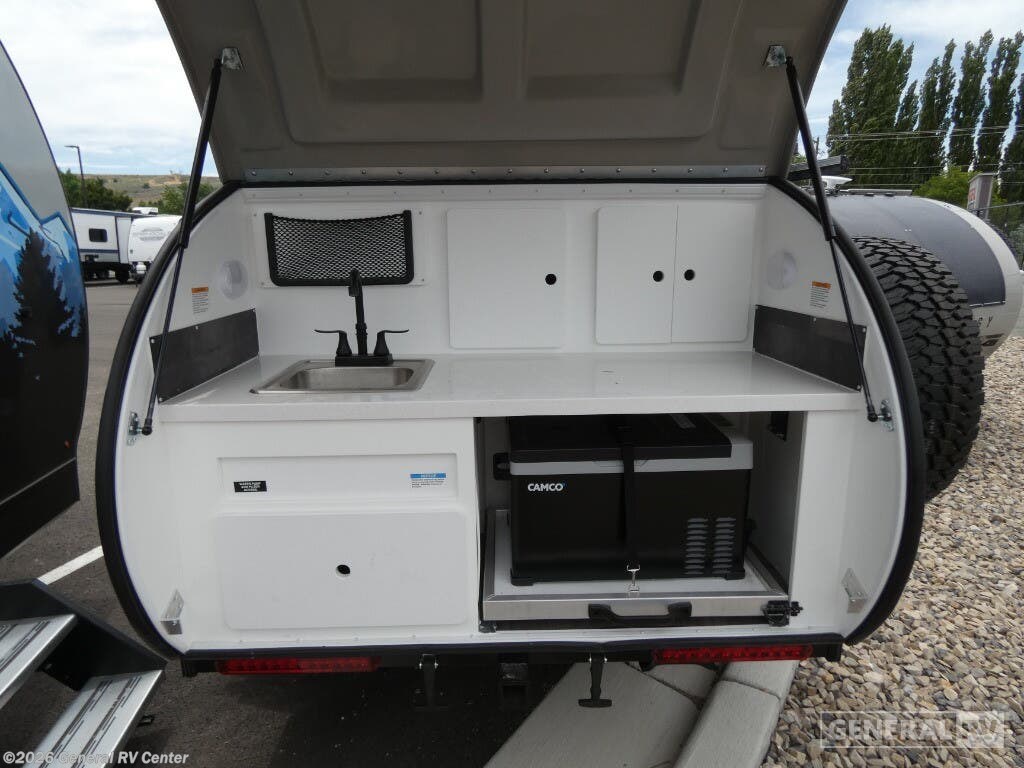 ## Modern Buggy RV Big Buggy teardrop trailer BB14 highlights - Wet Bath - Dinette Converts to 78" x 39" Bed - Front Window - Large Refrigerator If you're looking for a teardrop trailer with a little more space, check out this Big Buggy BB14! There is a front U-shaped dinette that can convert to cozy sleeping space,a Recpro two burner stove, plus a large refrigerator. You can clean up each day in the wet bath that includes a two way bath vent fan plus a Dometic toilet. The exterior baggage door will keep all your gear secure, and the torsion axle will provide smooth towing from home to campground. With the Big Buggy teardrop trailer by Modern Buggy RV, you will have all-terrain tires with 14" ground clearance allowing you to venture on bumpy, muddy and off-the-beaten path roads. They are full of modern amenities including LED lights, outlets, and USB charging stations, plus a 13,500 BTU air conditioner and electric heat strip. These models are built on a high quality strength, custom aluminum frame, and are put together with AZDEL ceiling and walls. Get out and explore today with the Big Buggy in tow!