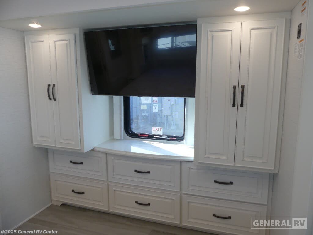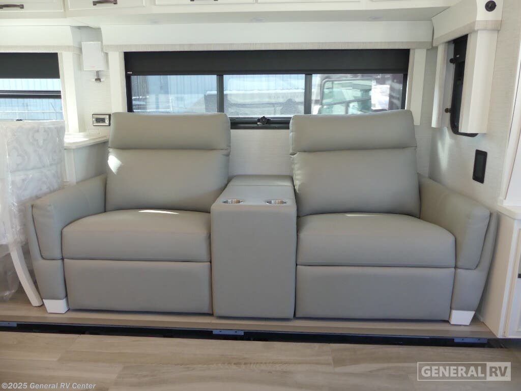 Discover the epitome of luxury travel with the 2025 Newmar Dutch Star 4369. This exquisite RV combines elegance and functionality, making it the perfect home on wheels for those who crave adventure without sacrificing comfort. At nearly 44 feet in length, this diesel pusher is powered by a robust 450-horsepower Cummins engine, ensuring a smooth and powerful ride. The Freightliner XC-Series chassis provides a sturdy foundation, while the automatic heater and full-size electric refrigerator add modern conveniences to your journey. Inside, the Dutch Star 4369 boasts a thoughtfully designed floorplan with a center kitchen and front living area, perfect for entertaining or relaxing after a day of exploration. The spacious interior features three slides, expanding your living space to accommodate up to six guests comfortably. Enjoy the plush king-sized bed in the master suite, while the convertible sofas offer additional sleeping options. The rear bathroom, complete with a dual-sink vanity and a large shower, provides a spa-like retreat. With the added convenience of washer and dryer prep, extended stays are a breeze. Whether you're lounging under the powered retractable awning or dining at the hide-a-leaf dinette, every moment in the Dutch Star 4369 is a testament to luxury and style. With a towing capacity of 15,000 pounds, this RV is ready for any adventure you have in mind. For more information and to experience this remarkable RV firsthand, visit your nearest General RV dealership.