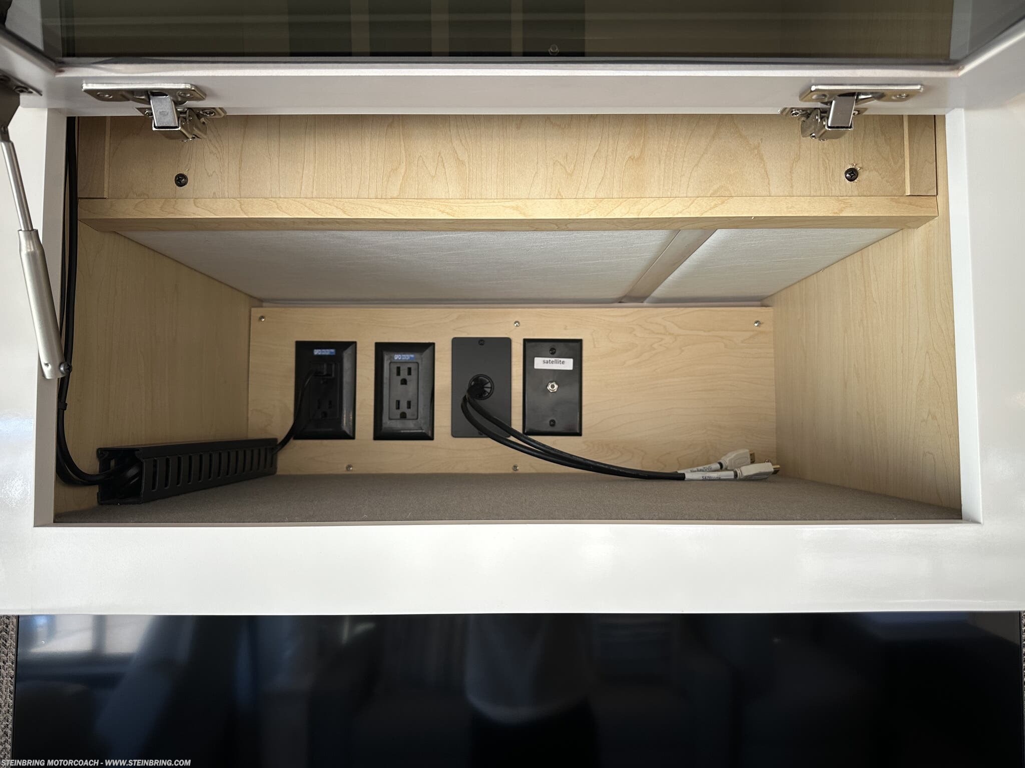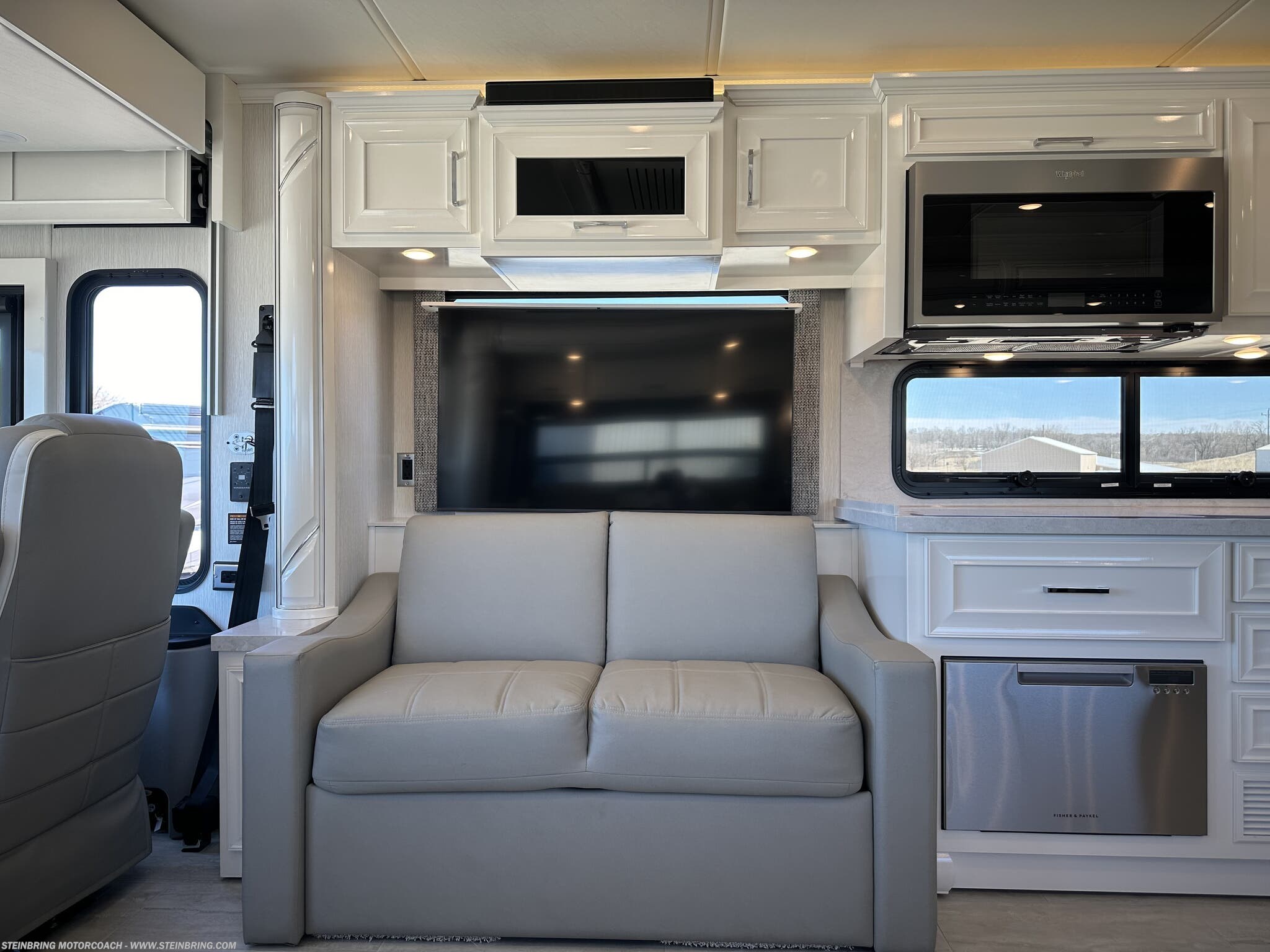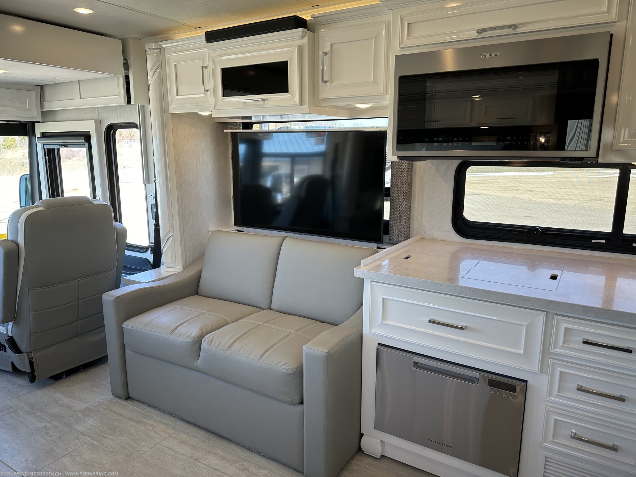 - Entertainment and connectivity: Omniview 360 camera system, Sirius radio, Starlink internet system, WiFi Ranger Denali, and 43-inch exterior TV