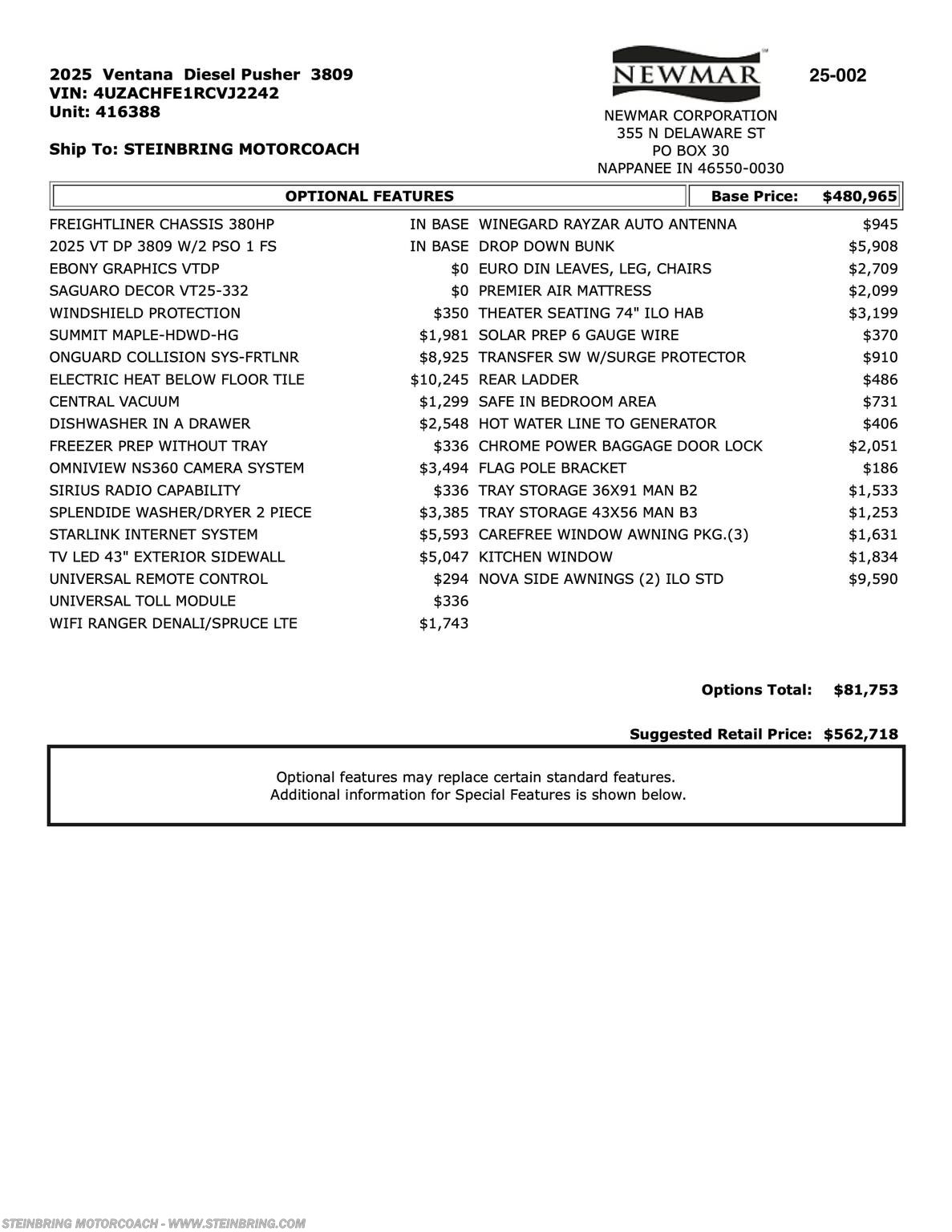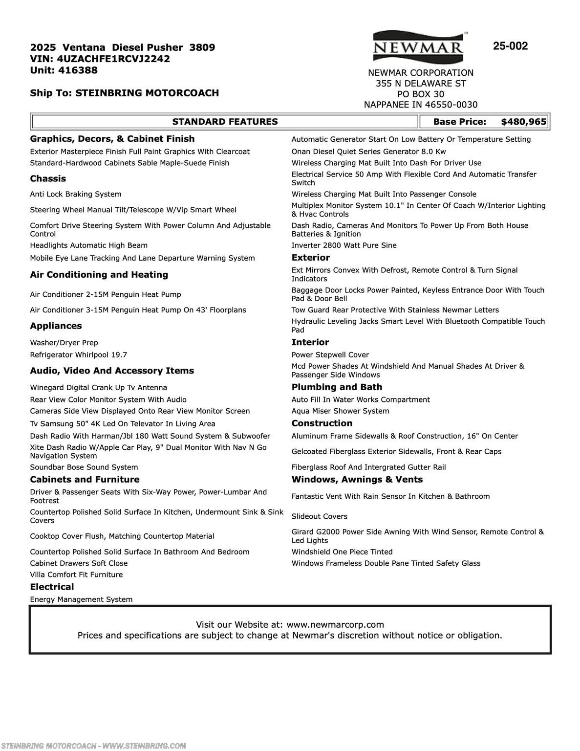 Request More Info on this 2025 Newmar Ventana 3809 Offered for sale by Steinbring Motorcoach
