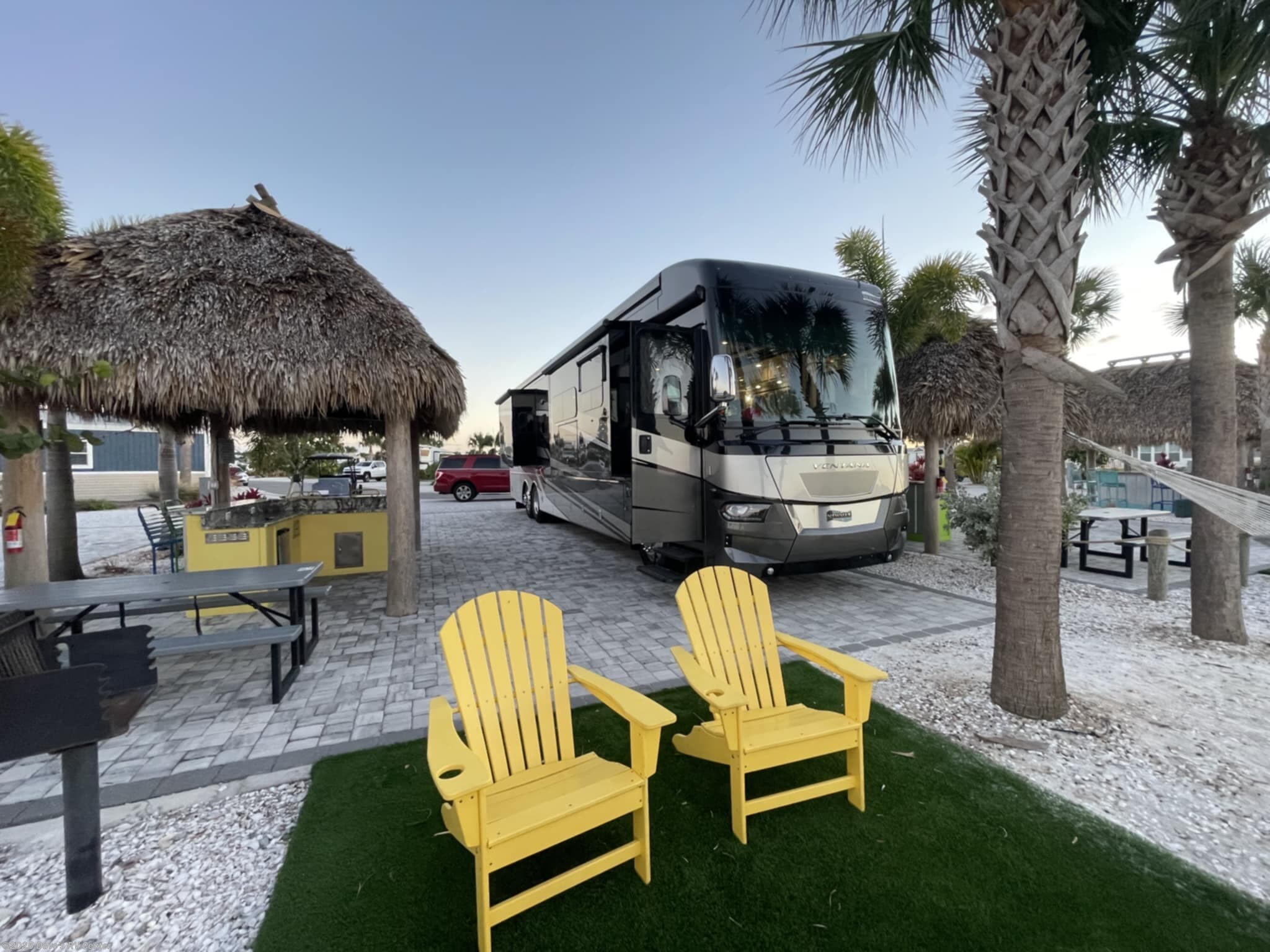 This 2025 Newmar Ventana 4340 is jam-packed with features to make RVing better than ever. Ready to be a proud Newmar owner? This 2025 Newmar Ventana 4340 is the perfect fit. The sleep capacity allows you to bring up to 8 along on your travels in this rig. There’s plenty of room for the whole family thanks to three spacious slides. It doesn’t matter whether you are cooking for one or an entire campground, this kitchen has everything you need with the fridge, oven, stove. Kick back and relax in the living area with the TV. Use the free standing dinette w/chairs for dinner time, homeschooling or remote work days. Comfort is important when RVing, and you’ll find just that with the king size bed. The A/C option will keep your travels at the perfect temperature. The 105 gallon fresh water tank is just right for easy RV traveling. The exterior features make camping a breeze, such as air assist suspension, awning, backup monitor, external shower, hitch, leveling jacks, power entrance step, power roof vent, skylight, slide-out awning and slideout. Make sure kids don’t track mud inside with the outside shower.