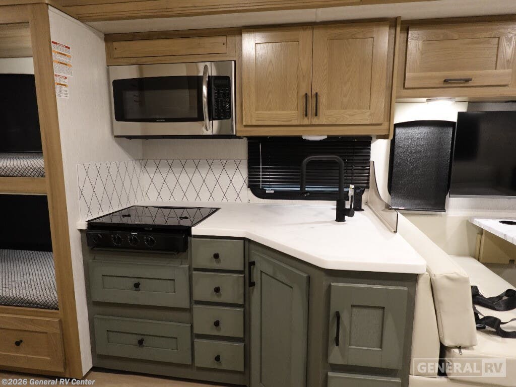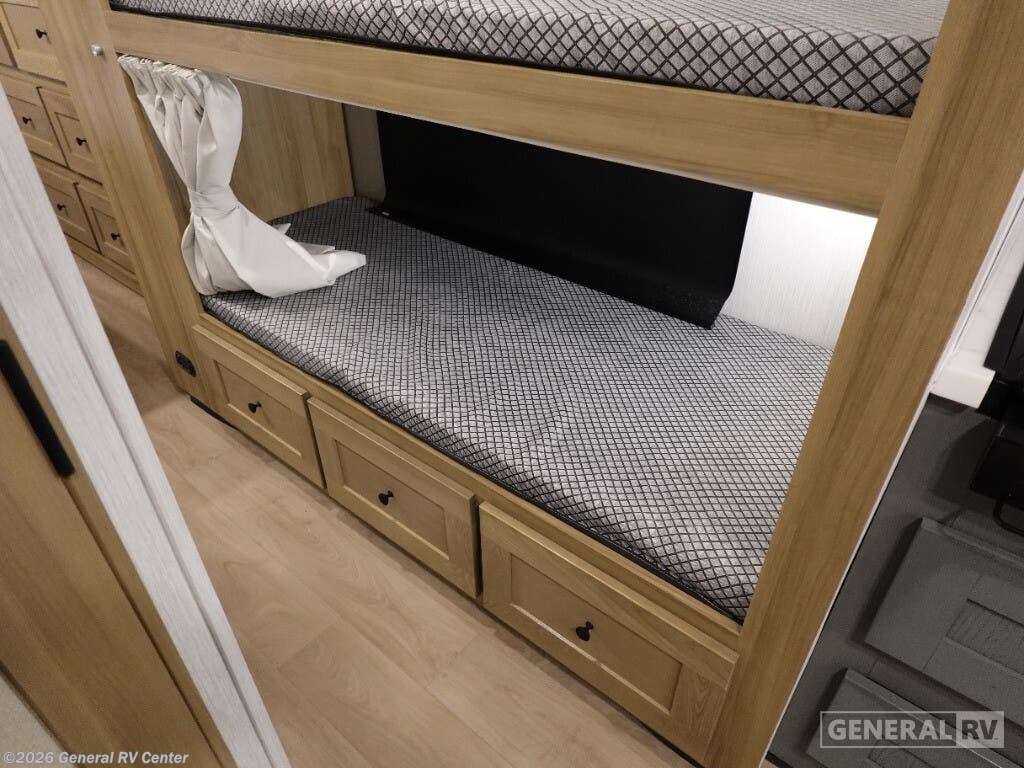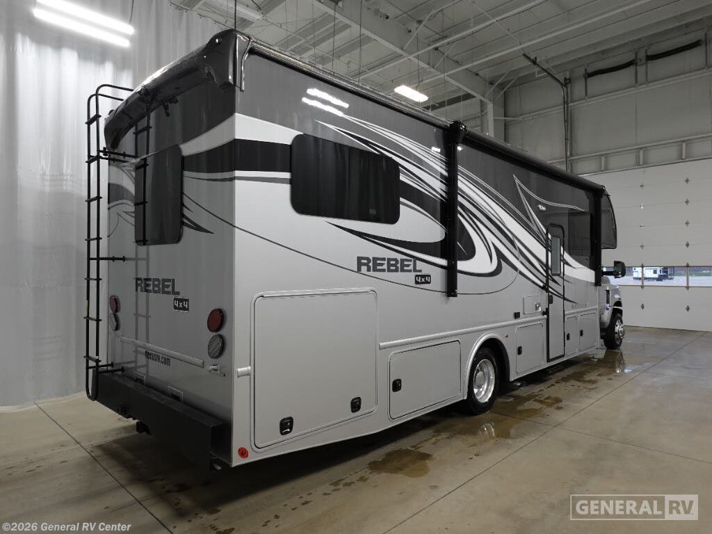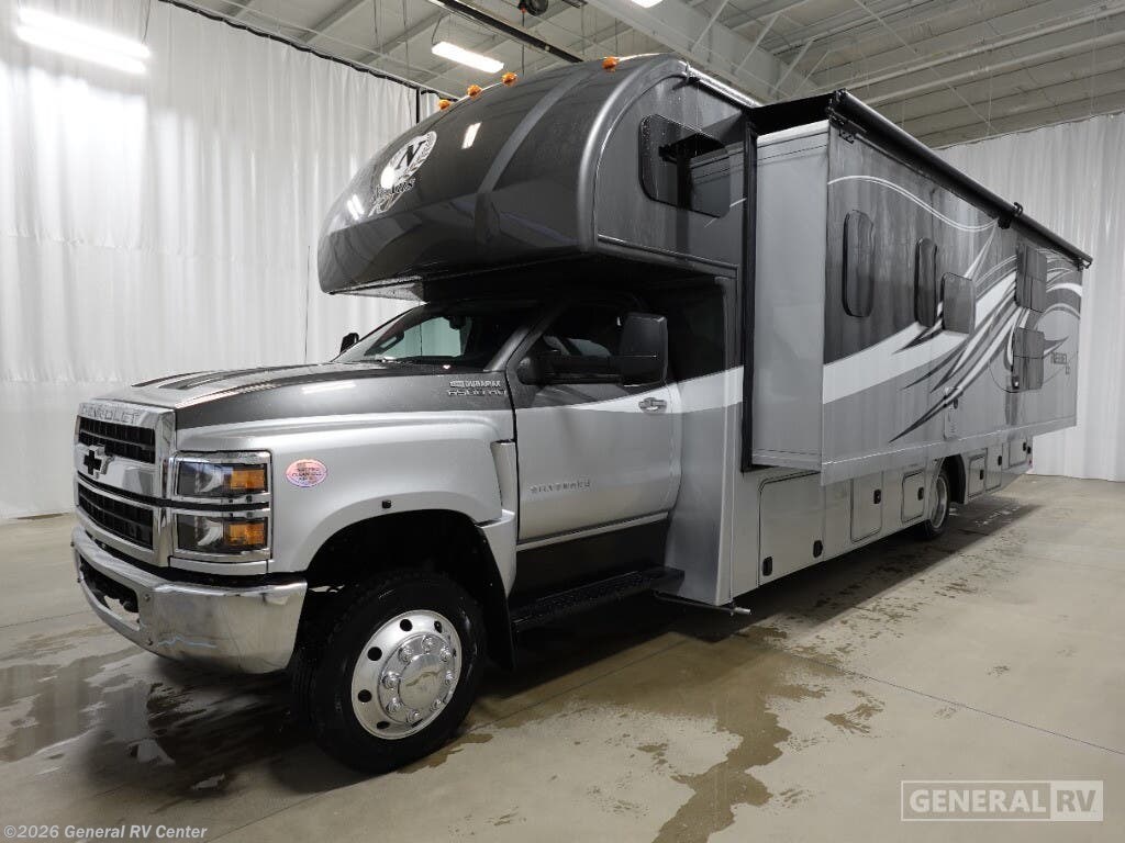 Experience the perfect blend of adventure and comfort with the 2025 NeXus RV Rebel 35R. Designed for the ultimate family getaway, this RV offers ample sleeping space for up to ten, ensuring everyone has their own cozy nook. The thoughtfully arranged floorplan includes a front living area with a comfy sofa and a dinette that easily converts into additional sleeping quarters. A full-size bed and a queen bed promise restful nights, while the bunkhouse adds an element of fun for the kids. The center kitchen is a culinary enthusiast's dream, featuring a full-size electric refrigerator and a three-burner cooktop, perfect for whipping up delicious meals on the road. The convection cooking option adds versatility to your cooking endeavors. With a powered retractable awning, enjoy outdoor relaxation in any weather. The rear bedroom offers privacy and a touch of luxury with its queen bed and ample wardrobe space. Built on a robust Chevrolet C6500 chassis with a Duramax V8 engine, this diesel-powered RV is ready to take you on unforgettable journeys with its impressive towing capacity and robust performance. For more details and to explore this RV in person, visit your nearest General RV dealership.