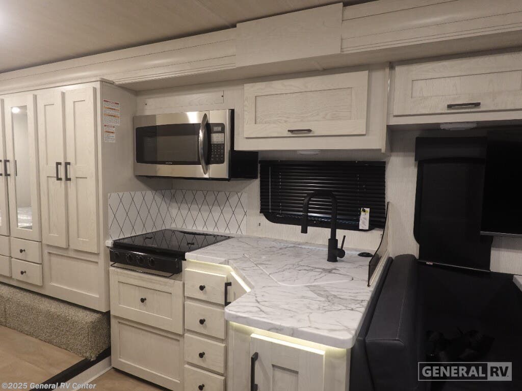 Experience the open road like never before with the 2025 NeXus RV Triumph 30T. This thoughtfully designed motorhome combines comfort and functionality, making it the perfect choice for families and adventure seekers alike. With the capacity to sleep up to eight people, this RV features a queen bed, a full-size bed, and two convertible sleeping areas, ensuring everyone has a cozy place to rest. The front living area is inviting and spacious, with a comfortable sofa and a dinette that encourages quality time and relaxation. The center kitchen is equipped with a full-size electric refrigerator, three-burner cooktop, and convection cooking capabilities, making meal preparation a breeze. The powered retractable awning extends your living space to the outdoors, creating an ideal setting for alfresco dining or simply enjoying the scenery. The rear bedroom offers a serene retreat, complete with ample storage and a dedicated space for entertainment. Built on a robust Ford E450 chassis with a 325 horsepower engine, the Triumph 30T is ready to take you on your next adventure with confidence and style. For more information or to explore this RV in person, visit your nearest General RV Dealership.