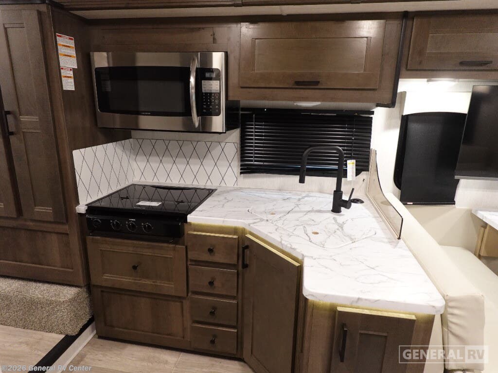 Experience the open road like never before with the 2025 NeXus RV Triumph 30T. This thoughtfully designed motorhome combines comfort and functionality, making it the perfect choice for families and adventure seekers alike. With the capacity to sleep up to eight people, this RV features a queen bed, a full-size bed, and two convertible sleeping areas, ensuring everyone has a cozy place to rest. The front living area is inviting and spacious, with a comfortable sofa and a dinette that encourages quality time and relaxation. The center kitchen is equipped with a full-size electric refrigerator, three-burner cooktop, and convection cooking capabilities, making meal preparation a breeze. The powered retractable awning extends your living space to the outdoors, creating an ideal setting for alfresco dining or simply enjoying the scenery. The rear bedroom offers a serene retreat, complete with ample storage and a dedicated space for entertainment. Built on a robust Ford E450 chassis with a 325 horsepower engine, the Triumph 30T is ready to take you on your next adventure with confidence and style. For more information or to explore this RV in person, visit your nearest General RV Dealership.