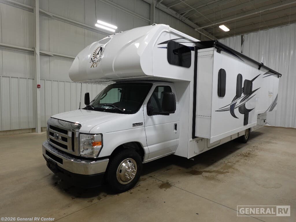 Experience the open road like never before with the 2025 NeXus RV Triumph 30T. This thoughtfully designed motorhome combines comfort and functionality, making it the perfect choice for families and adventure seekers alike. With the capacity to sleep up to eight people, this RV features a queen bed, a full-size bed, and two convertible sleeping areas, ensuring everyone has a cozy place to rest. The front living area is inviting and spacious, with a comfortable sofa and a dinette that encourages quality time and relaxation. The center kitchen is equipped with a full-size electric refrigerator, three-burner cooktop, and convection cooking capabilities, making meal preparation a breeze. The powered retractable awning extends your living space to the outdoors, creating an ideal setting for alfresco dining or simply enjoying the scenery. The rear bedroom offers a serene retreat, complete with ample storage and a dedicated space for entertainment. Built on a robust Ford E450 chassis with a 325 horsepower engine, the Triumph 30T is ready to take you on your next adventure with confidence and style. For more information or to explore this RV in person, visit your nearest General RV Dealership.