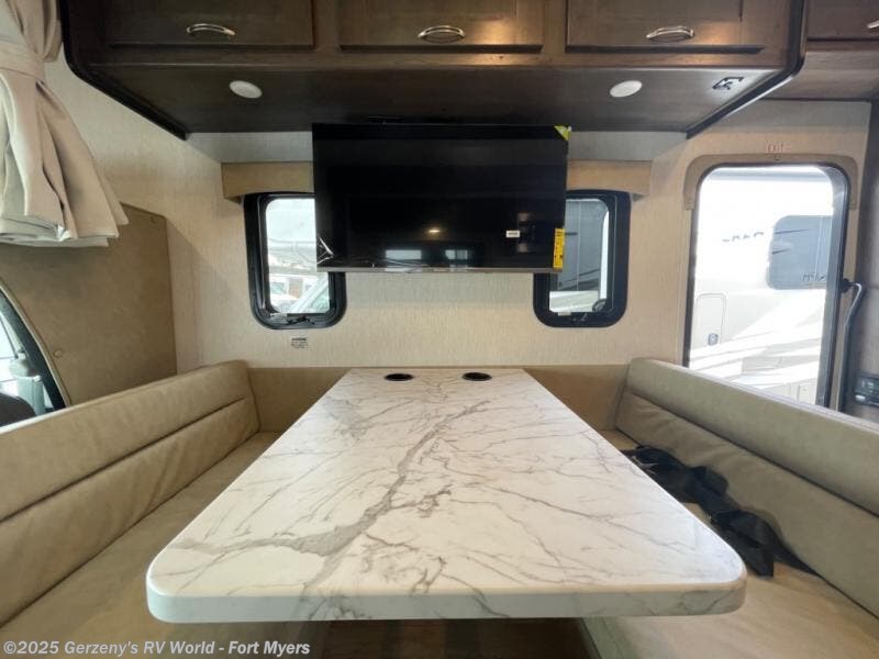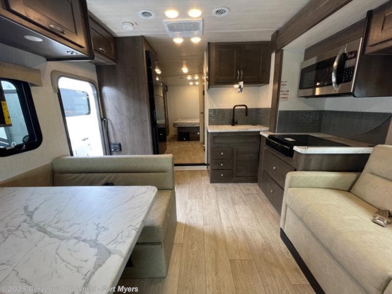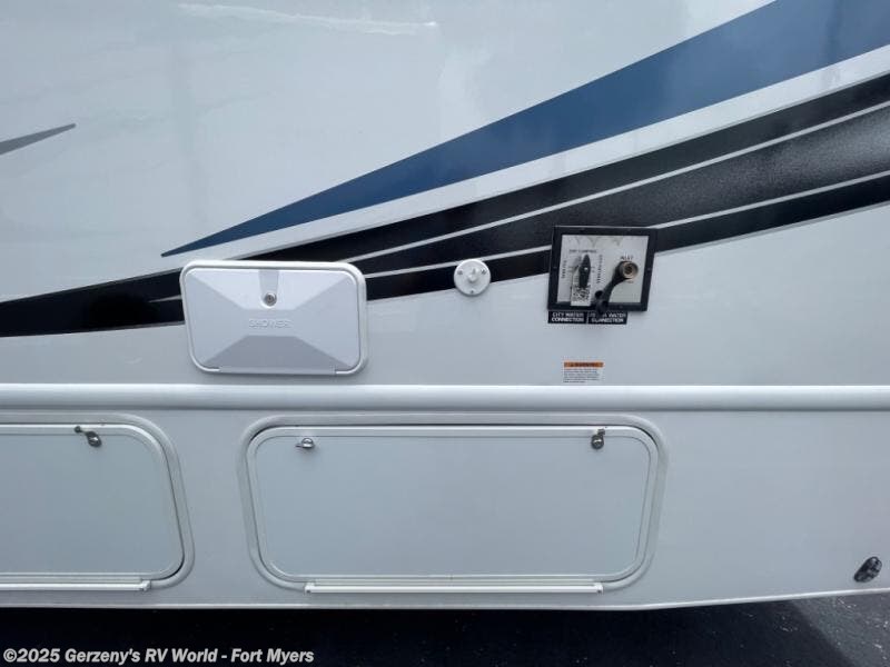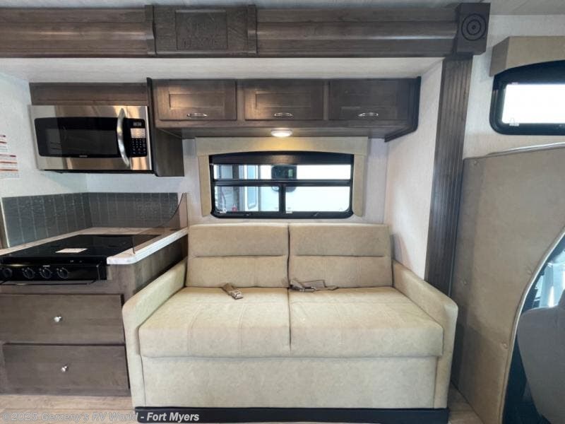 With a set of bunk beds, the grandkids can come along on all of your great adventures with this motorhome! The rear private bedroom has a queen bed for you to lay your head on at night with a wardrobe closet across from it to keep your clothes looking their best. The full bathroom is across from the bunk beds and has a shower with a skylight above and a flexible hose with the shower head, plus there is an outside shower to keep the sand outdoors. The booth dinette is not only great for enjoying your meals and playing card games, but also for transforming into an extra sleeping space. End your nights in true relaxation by sitting in one of the two recliners!