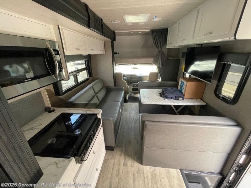 With a set of bunk beds, the grandkids can come along on all of your great adventures with this motorhome! The rear private bedroom has a queen bed for you to lay your head on at night with a wardrobe closet across from it to keep your clothes looking their best. The full bathroom is across from the bunk beds and has a shower with a skylight above and a flexible hose with the shower head, plus there is an outside shower to keep the sand outdoors. The booth dinette is not only great for enjoying your meals and playing card games, but also for transforming into an extra sleeping space. End your nights in true relaxation by sitting in one of the two recliners!