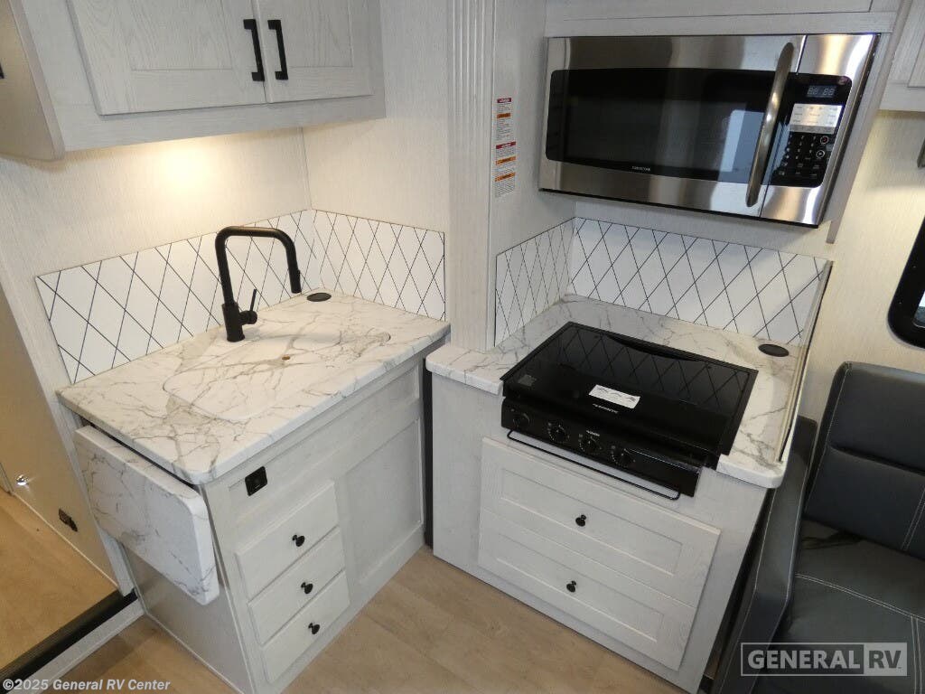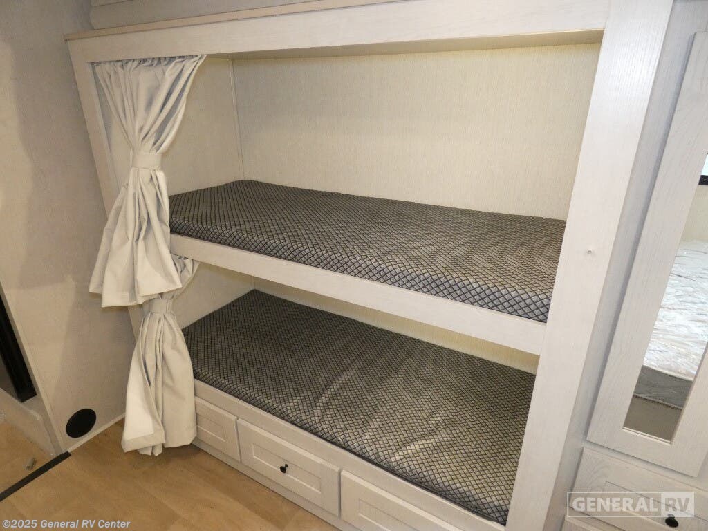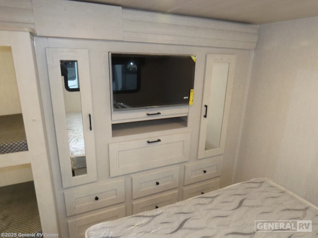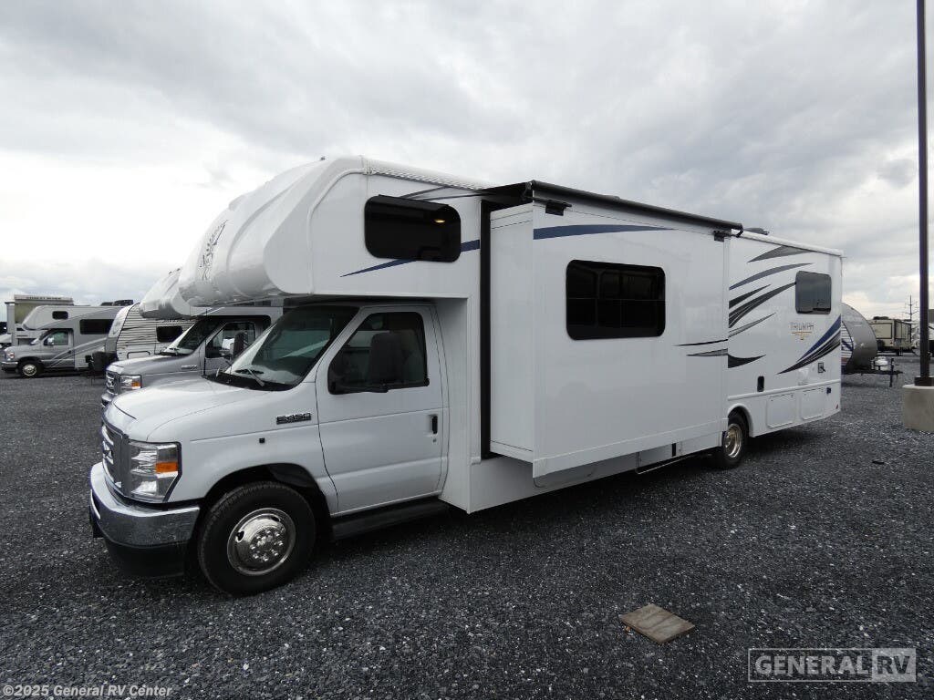Discover the 2025 NeXus RV Triumph 32T, where spacious comfort meets modern convenience. This RV is designed for families and groups, offering sleeping arrangements for up to 10 people with a queen bed, full-size bed, convertible options, and cozy bunks. The center kitchen is equipped with a three-burner cooktop and convection cooking, making meal preparation a breeze. The full-size electric refrigerator ensures you have plenty of space to store your favorite foods and beverages. As you explore the floorplan, you'll find a welcoming front living area perfect for relaxation. The center bath with a shower curtain provides privacy and convenience, while the rear bedroom offers a serene escape with ample storage in the wardrobe closet. The powered retractable awning invites you to enjoy outdoor living, while the robust Ford E450 chassis with 325 horsepower and 450 torque ensures a smooth and powerful drive. With a length of nearly 33 feet, this RV combines elegance and functionality, making it the ideal choice for your next adventure. For more details, visit your nearest General RV dealership.