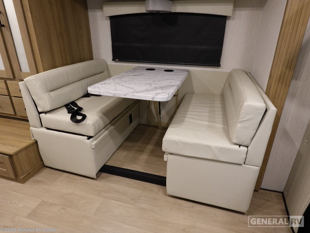 Step into the 2025 NeXus RV Triumph Sport 24TS, where adventure meets comfort in a beautifully compact design. This RV is built on the robust Ford E350 chassis, offering 325 horsepower and 450 torque, making it a powerful companion for all your road trips. With a length of 25 feet, it's perfectly sized for both city streets and open highways. The floorplan is thoughtfully designed with a front living area that invites relaxation, while the center kitchen becomes the heart of your travels, featuring a full-size electric refrigerator, convection cooking, and a three-burner cooktop to whip up your favorite meals on the go. Inside, the Triumph Sport 24TS comfortably sleeps up to six, with a queen bed, a full-size convertible bed, and additional sleeping space in the dinette area. The rear bath provides privacy and convenience with a shower curtain setup. Enjoy the outdoors with the powered retractable awning, perfect for creating shaded retreats wherever you park. With a 40-gallon fresh water capacity and ample gray and black water storage, your journey is as self-sufficient as it is exciting. For more details or to experience this RV in person, visit your nearest General RV dealership.