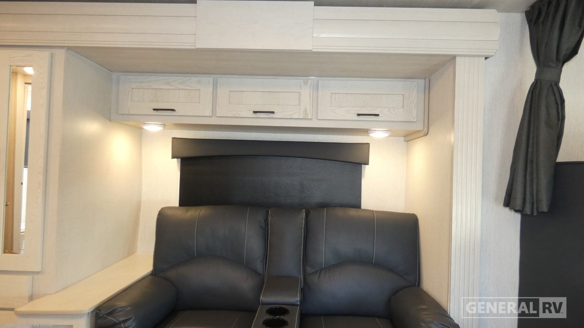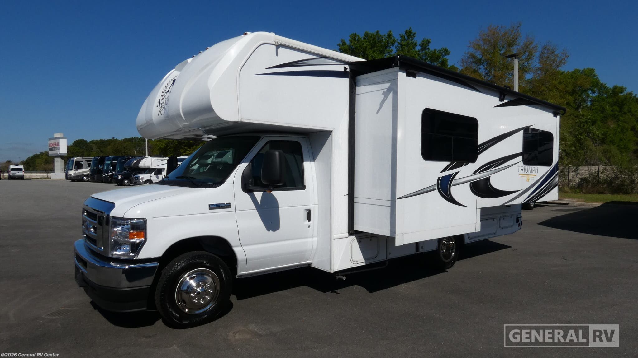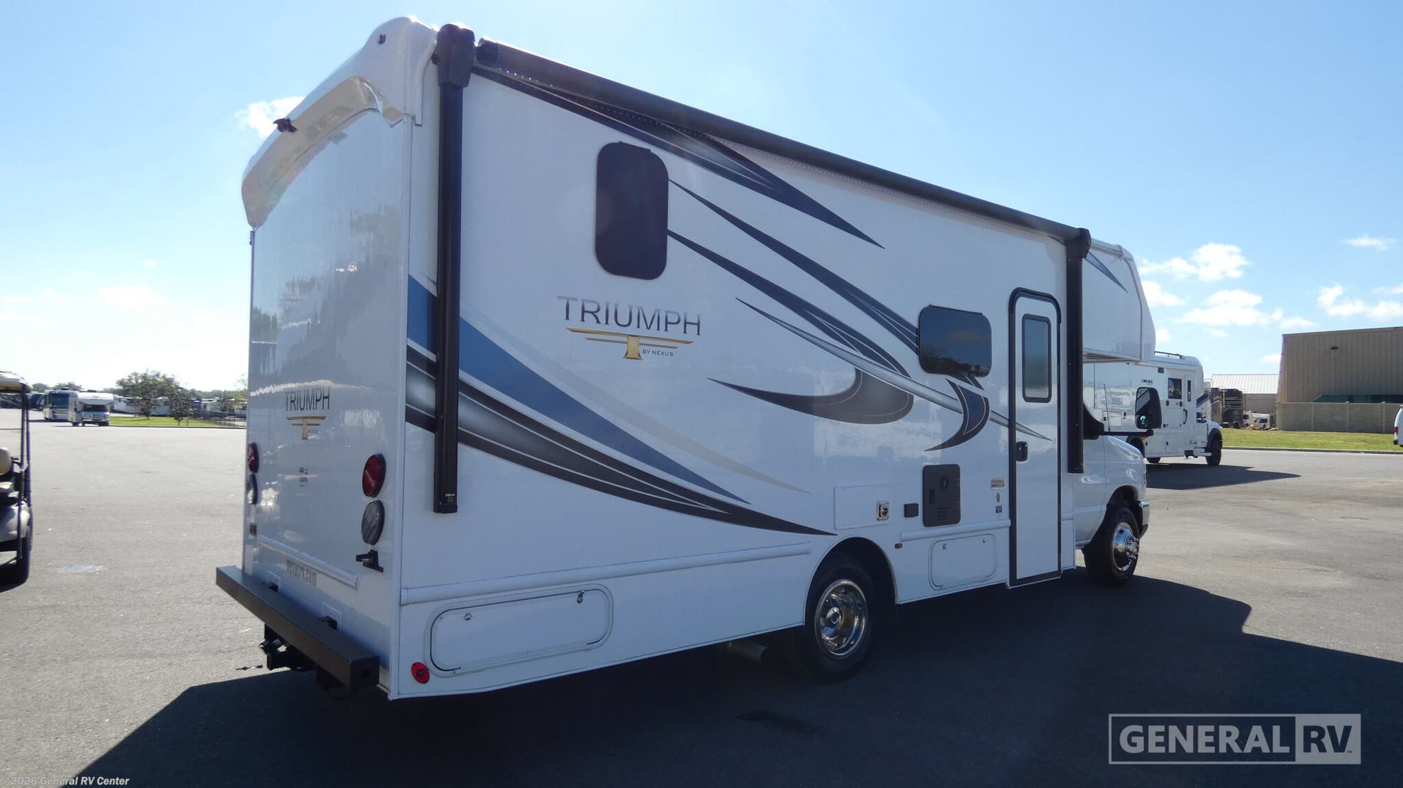 **NeXus RV Triumph Sport Series Class C gas motorhome 24TS highlights:** - Bunk Over Cab - 60" x 74" Queen Bed - Booth Dinette - Full-Wall Slide Pack your bags and head across the country in this cozy coach! Get a good night's rest each night on the deluxe innerspring 60" x 74" queen bed, and freshen up in the morning with the shower with a skylight in the rear corner bathroom. And there is a wardrobe beside the bed to keep your clothes out of the way too. Grab some eggs from the 10 cu. ft. 12V refrigerator then head to the three burner cooktop to fry them up. You can then enjoy them at the booth dinette within the full-wall slide, which can also transform into an extra sleeping space. The bunk over cab is also another sleeping space or it can be used for storage! Build your dream with one of these NeXus RV Triumph Sport Series Class C gas motorhomes! Their high strength low alloy lightweight steel cage sidewalls and roof is 72% stronger and the composite substrate is impervious to water, plus their seamless fiberglass roof is damage resistant too. There are rubber-lined galvanized steel trunk boxes to keep your gear secure, an electric awning with LED lighting, and a rear back up camera to make parking easier than ever. You will enjoy their sleek interiors with upgraded flooring, upgraded window treatments, and night roller shades. There is also a generator to keep you powered up and a TV in the living room for your entertainment needs!