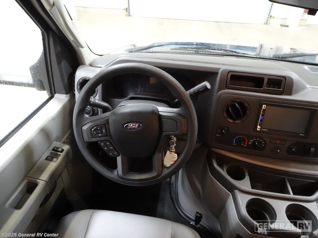 Step into the 2025 NeXus RV Viper 23V, where comfort meets functionality in a compact yet spacious design. With its sleek 24.67-foot length, this RV is built on the reliable Ford E350 chassis, powered by a robust 325-horsepower engine. The front living area invites you to relax and unwind, featuring a full-size bed and a convertible sleeping space, accommodating up to four people. The center kitchen is equipped with a three-burner cooktop and a full-size electric refrigerator, ensuring you have everything you need to whip up a meal on the road. The rear bath offers convenience with its curtain shower, while ample storage solutions like the wardrobe and pantry keep your essentials organized. Enjoy the great outdoors under the powered retractable awning, perfect for creating a cozy outdoor space. With a 40-gallon fresh water capacity and a towing capacity of 7,500 pounds, the Viper 23V is ready for your next adventure. For more information, visit your nearest General RV dealership.