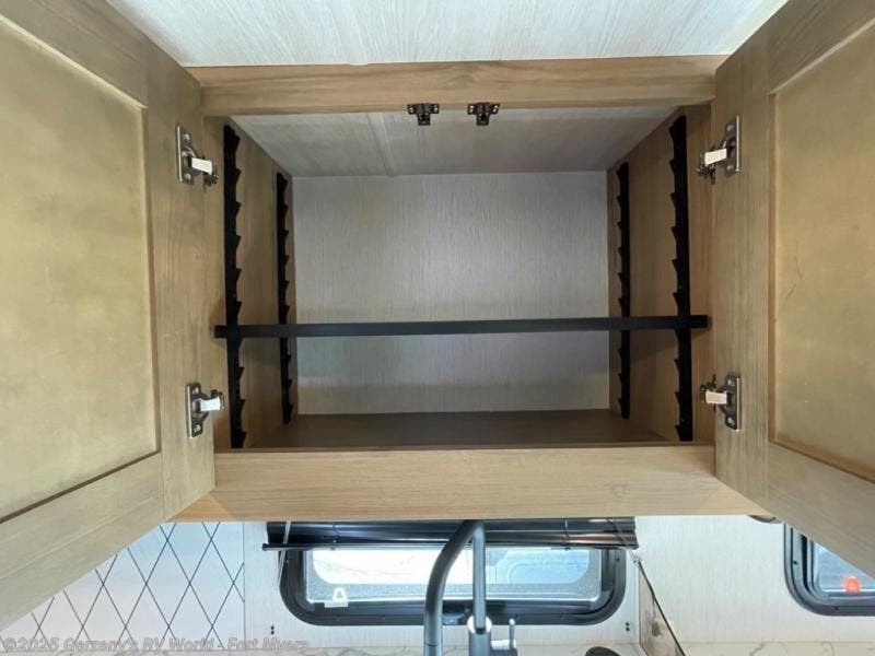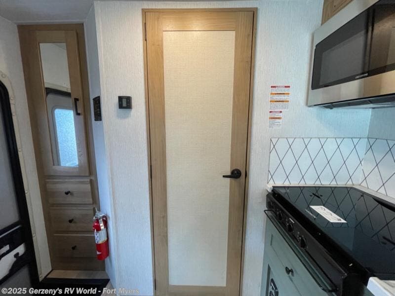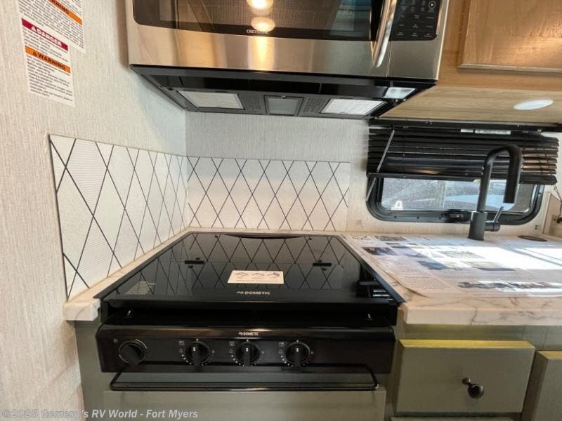 Enjoy this compact yet feature-packed floorplan! The dinette converts to a 60" x 74" bed for a good night's rest. The rear corner bath has a 24" x 32" shower so you can clean up privately, and there's a medicine cabinet to store your toiletries. The kitchen is fully equipped with a three-burner range, microwave, and 12 volt refrigerator, perfect for cooking on the go. There's plenty of storage space including a pantry in the kitchen and a wardrobe closet right next to the entry. Everyone will have a great view of the cab over entertainment center with 40" LED TV. You'll love the 4.0 KW generator when you decide to stop off-grid, the LP quick disconnect, and the 7,500 lb. hitch.