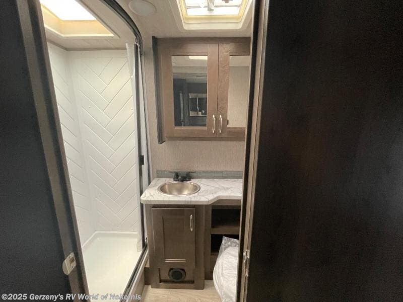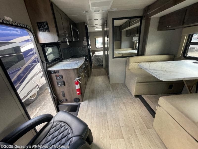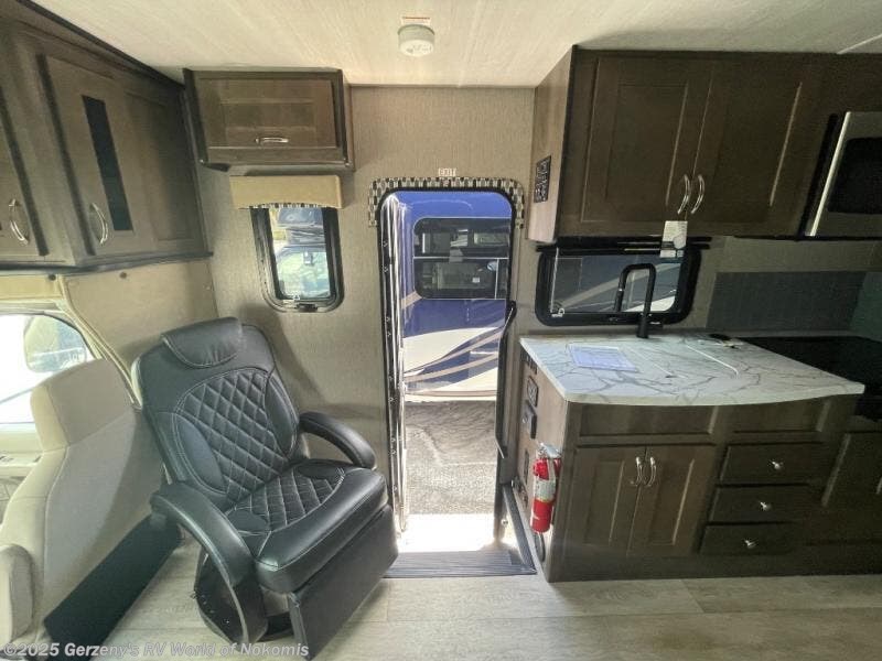 Whether you travel with your family on long vacations or your spouse for months at a time, this spacious Class B+ offers two slide outs giving you lots of floor space to enjoy at any destination. The cook will love having a 10 cu. ft. refrigerator to carry lots of goodies especially when the family joins you, and there is storage found throughout in overhead cabinets for your dishes and such. The full bathroom is in between the main area and the rear bedroom and offers a shower with a flexible hose shower head, a skylight for more headroom in the shower, and a vinyl door, plus everything else needed to stay refreshed. The rear window in your bedroom will provide great views while you lay in your queen bed slide out! You will have a wardrobe to keep your clothing ready for shopping in town or venturing outdoors, and you might like to add the optional LED TV. You will also find a 4.0 KW generator, an LP quick disconnect, and a 7,500 lb. hitch if you decide to tow something.