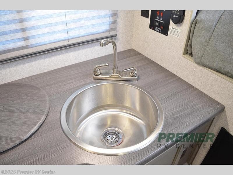 You'll have everything you need and more in this cozy truck camper for three to four. Once you arrive at the campground, you can put out the 7' 4" rear awning with LED lights, unload your bags, then head inside to make lunch on the three burner cooktop. There is also a residential-style microwave with an air fryer and an 8 cu. ft. 12V refrigerator for all your kitchen needs. A booth dinette provides a place to dine together and let a guest or two little ones sleep over. The front queen-size bed will be perfect for you, and there are three wardrobes around the bed to keep your things organized. And if you enjoy watching movies in bed, just choose the optional 24" 12V LED TV!