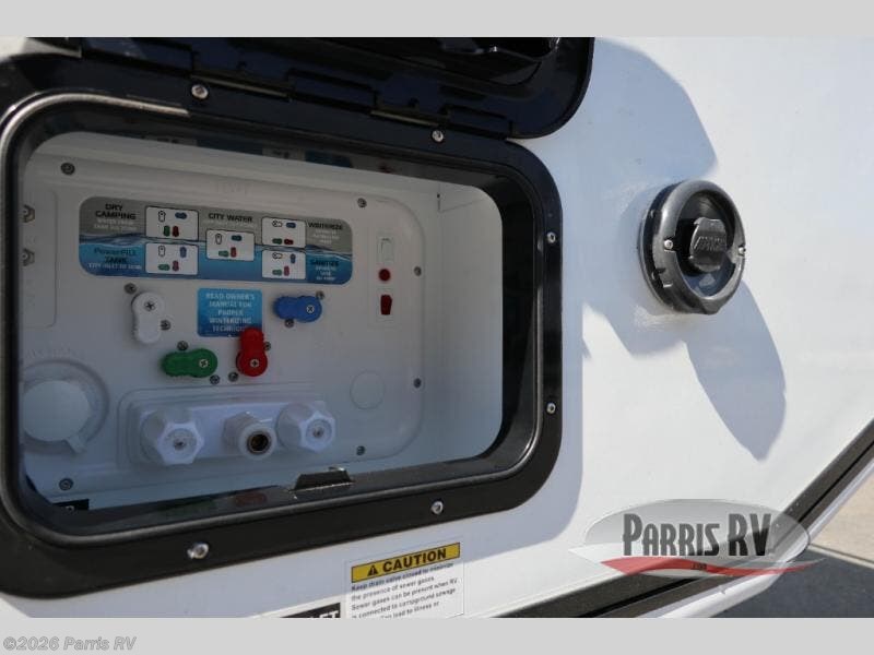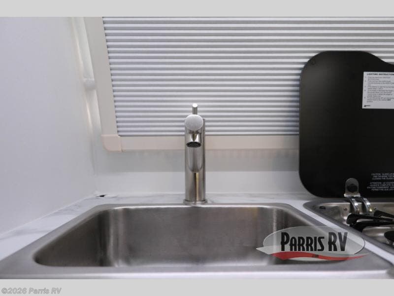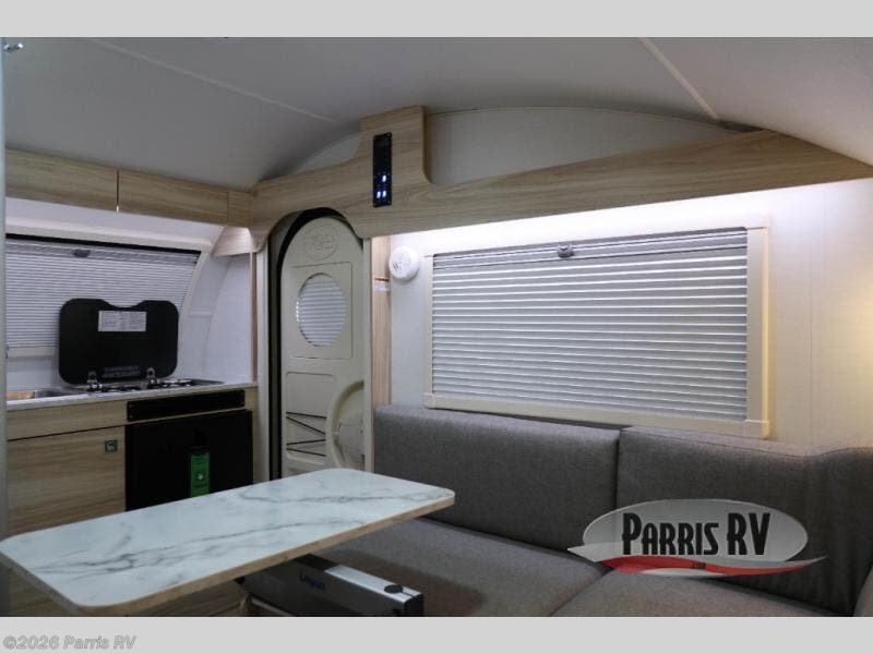 With any TAB 320 teardrop trailer by nüCamp RV, the interior offers premium soft-close cabinetry, a front window, plus a wet bath with a cassette toilet and a molded sink. The iconic teardrop design offers an easy-to-tow unit with amenities found in much bigger trailers. Some other highlights include the Alde heating/hot water system, the central air conditioner, 180 watt solar panel, and the Nautilus water system with an external shower. The optional Boondock and Black Canyon packages include an additional 310 watt solar panel, holding tank heaters, and under-glow lights. With these upgrades your tow length increases by 3" and hitch and gross weight will be higher as well!