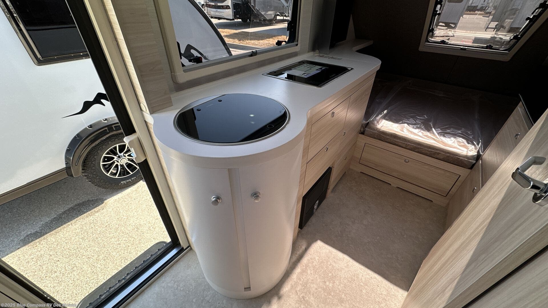 The TAB 400 by nuCamp RV is mighty in essentials and spacious for a teardrop trailer! There is a Froli sleep system, a spacious wet bath, a galley kitchen and plenty of storage plus a dinette. Inside you will enjoy the Bluetooth media center, premium soft-close cabinetry, and monster picture window. Some conveniences include a 310 watt solar panel allowing you to choose a spot off-grid to camp, and you can also choose the Boondock and Black Canyon optional packages available an additional 310 watt solar panel, holding tank heaters, and under-glow lights. Select a TAB 400 today to enjoy the unique shape of the teardrop, and the spacious interior for extended trips!