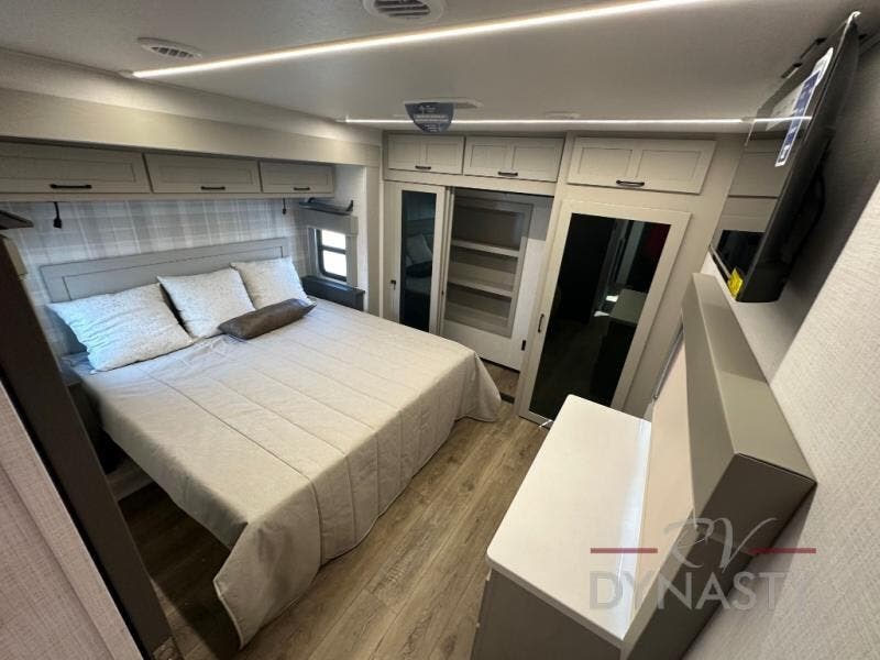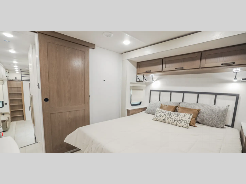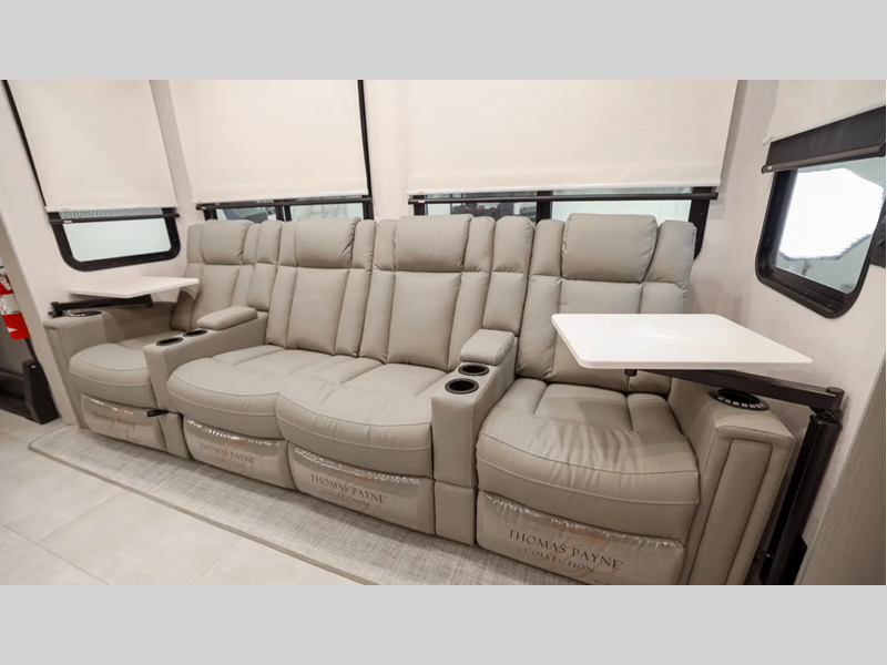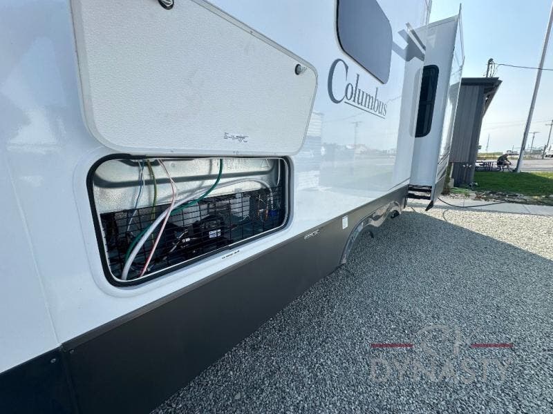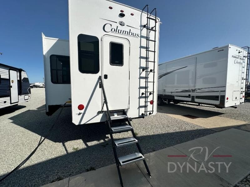 Experience a different camping life with residential furnishings and high end features in each one of these Palomino Columbus fifth wheels! The 101" wide body lets you walk around more throughout and the all-welded aluminum-frame superstructure has a snap-in ceiling molding to hold up through every adventure. Don't leave any of your gear behind either when you can easily store it in the climate controlled drop frame storage area. On the exterior, you'll find a heated utility convenience center, an outside sprayer to keep the dirt outside where it belongs, and magnetic compartment door holds to keep them from falling on you as you grab your items. Plus, there are some modern features that will really seal the deal like the Wi-Fi Booster with 4G LTE capability prep, upgraded true solid-surface countertops, power theater seating with USB charging, and a 260W solar panel for off-grid camping!