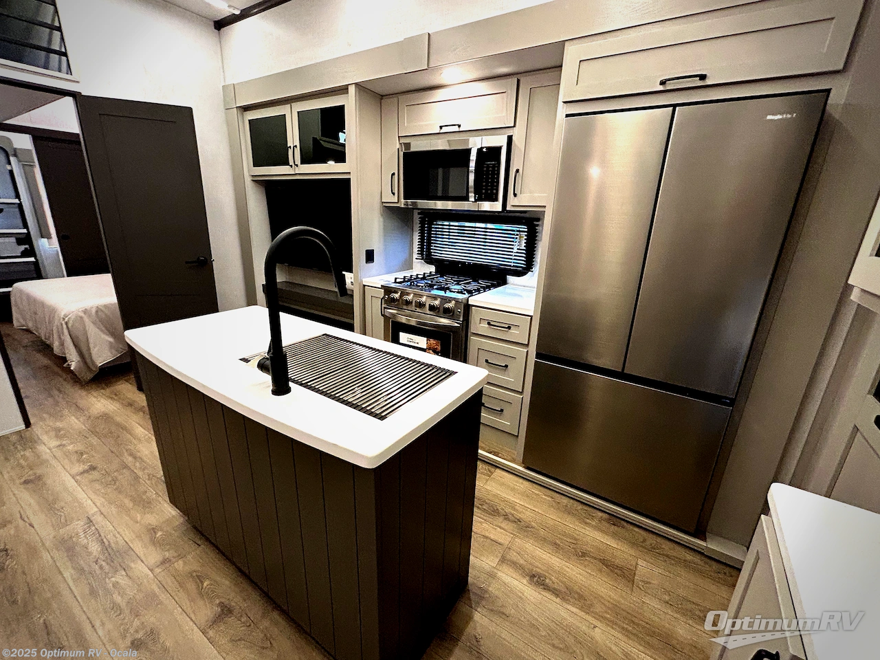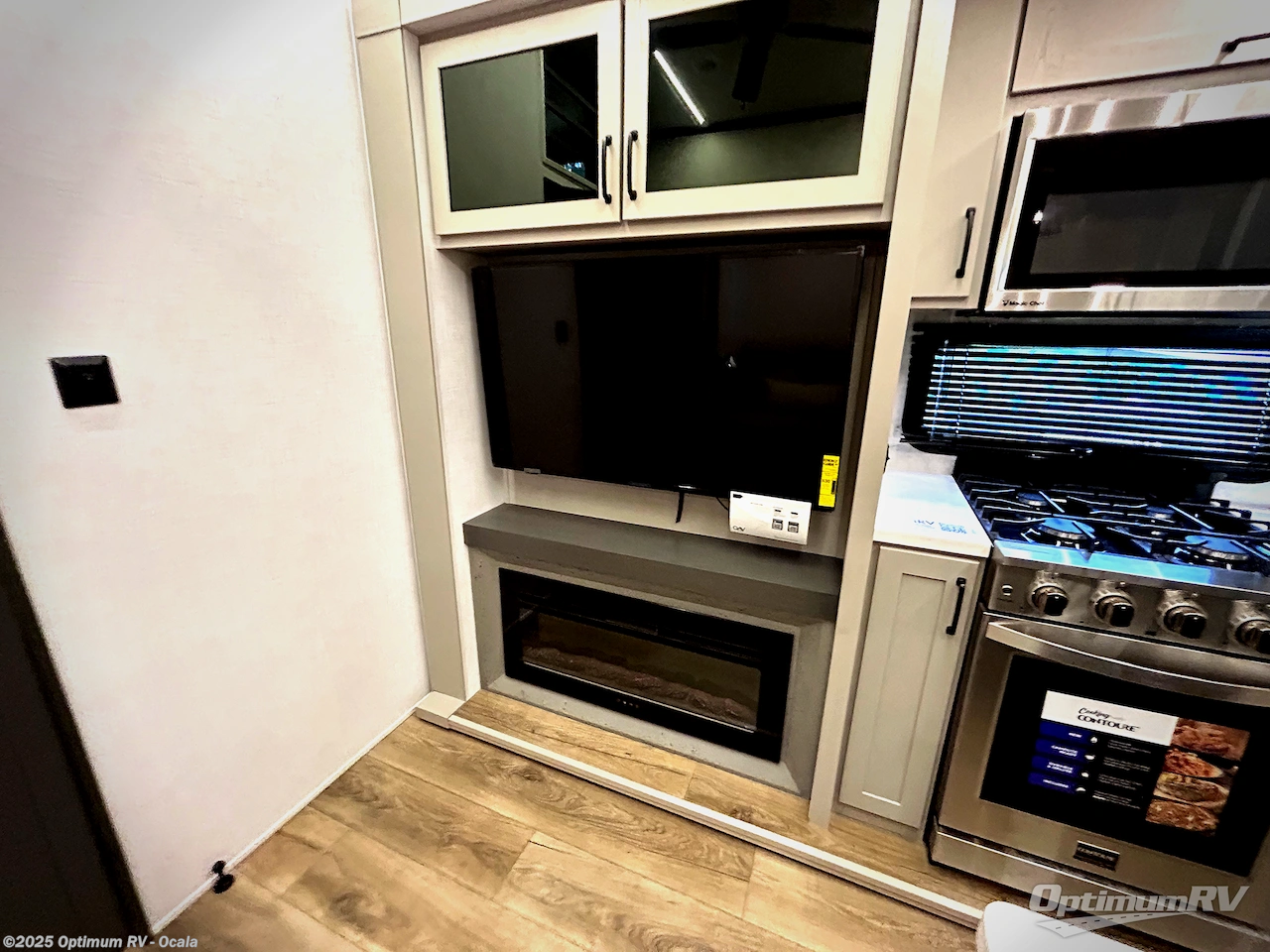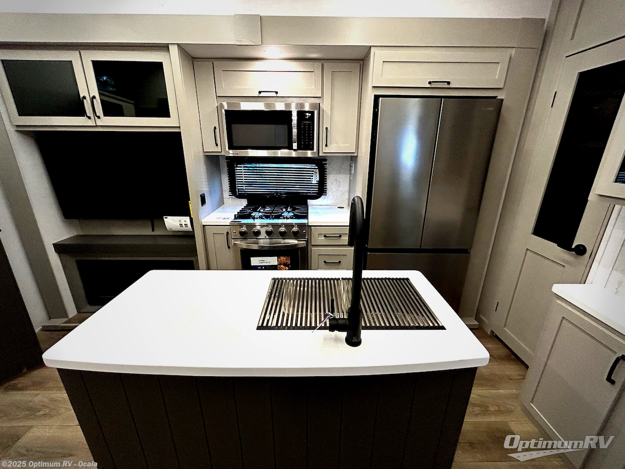 Experience a different camping life with residential furnishings and high end features in each one of these Palomino Columbus fifth wheels! The 101" wide body lets you walk around more throughout and the all-welded aluminum-frame superstructure has a snap-in ceiling molding to hold up through every adventure. Don't leave any of your gear behind either when you can easily store it in the climate controlled drop frame storage area. On the exterior, you'll find a heated utility convenience center, an outside sprayer to keep the dirt outside where it belongs, and magnetic compartment door holds to keep them from falling on you as you grab your items. Plus, there are some modern features that will really seal the deal like the Wi-Fi Booster with 4G LTE capability prep, upgraded true solid-surface countertops, power theater seating with USB charging, and a 260W solar panel for off-grid camping!