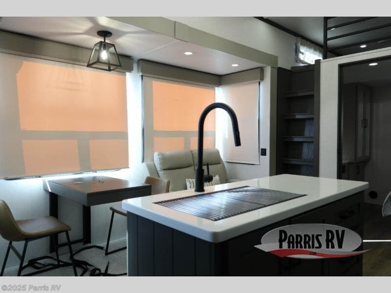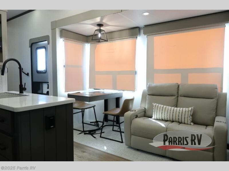 Experience a different camping life with residential furnishings and high end features in each one of these Palomino Columbus fifth wheels! The 101" wide body lets you walk around more throughout and the all-welded aluminum-frame superstructure has a snap-in ceiling molding to hold up through every adventure. Don't leave any of your gear behind either when you can easily store it in the climate controlled drop frame storage area. On the exterior, you'll find a heated utility convenience center, an outside sprayer to keep the dirt outside where it belongs, and magnetic compartment door holds to keep them from falling on you as you grab your items. Plus, there are some modern features that will really seal the deal like the Wi-Fi Booster with 4G LTE capability prep, upgraded true solid-surface countertops, power theater seating with USB charging, and a 260W solar panel for off-grid camping!