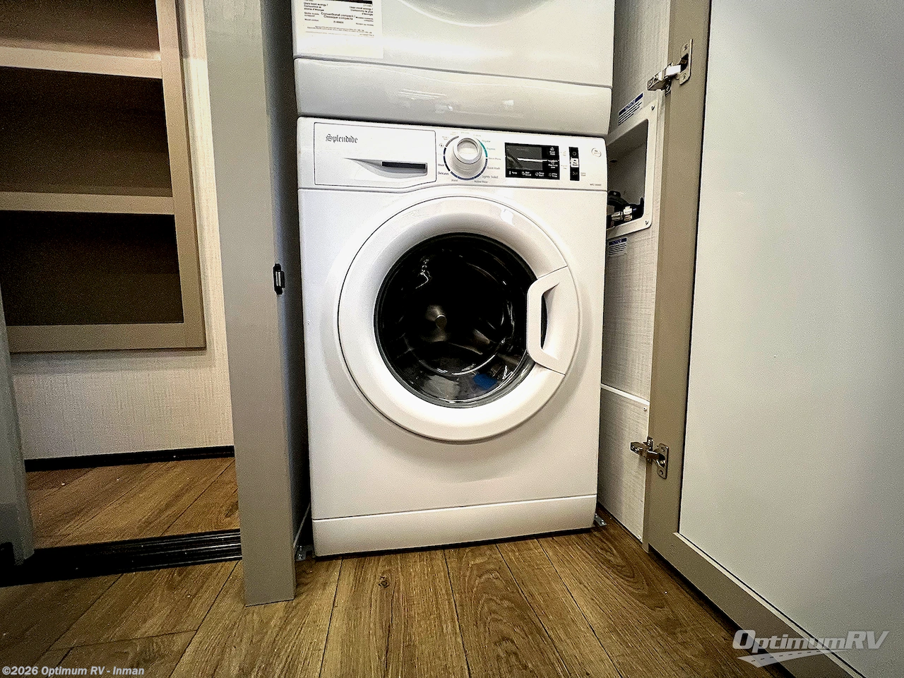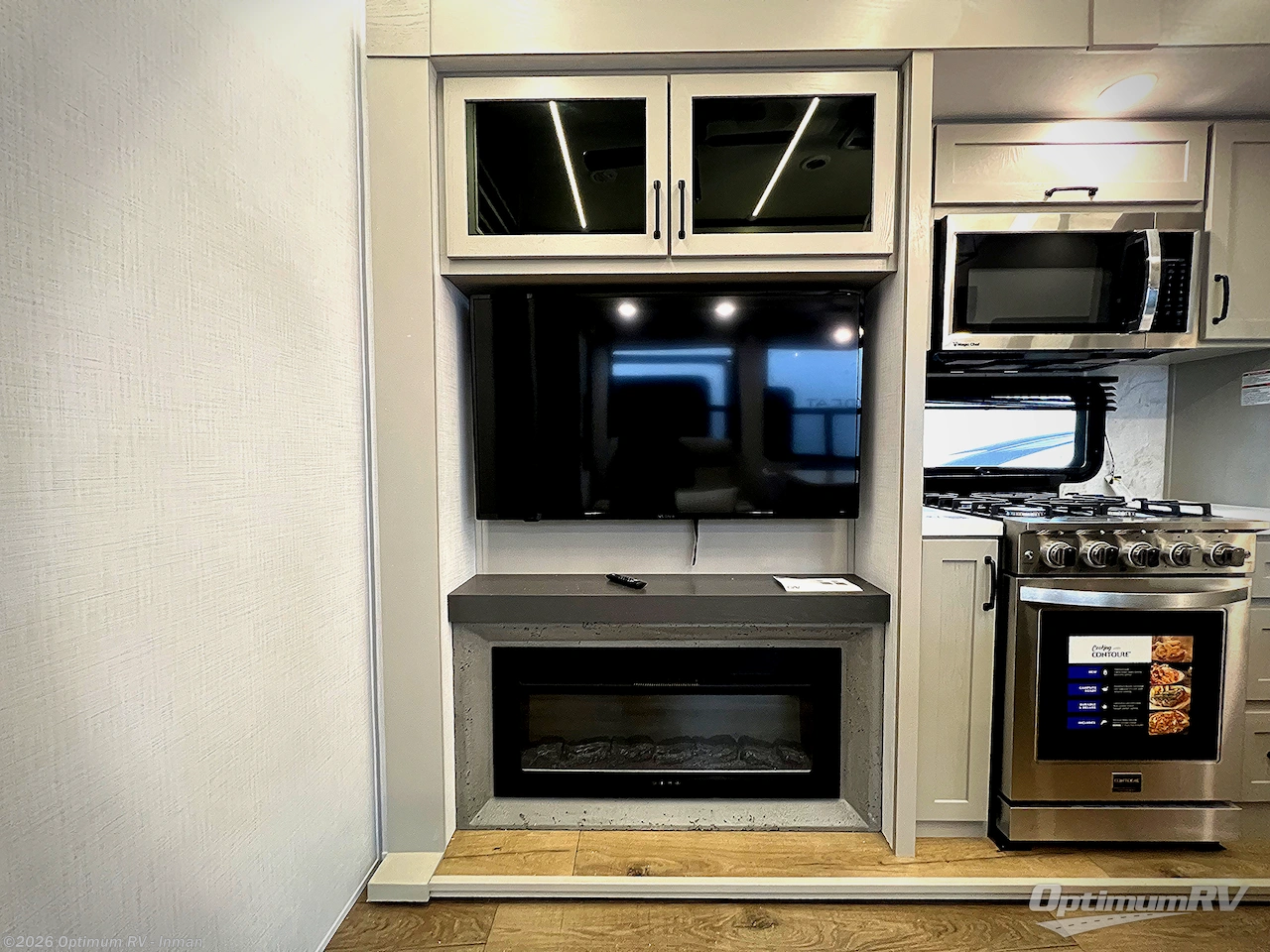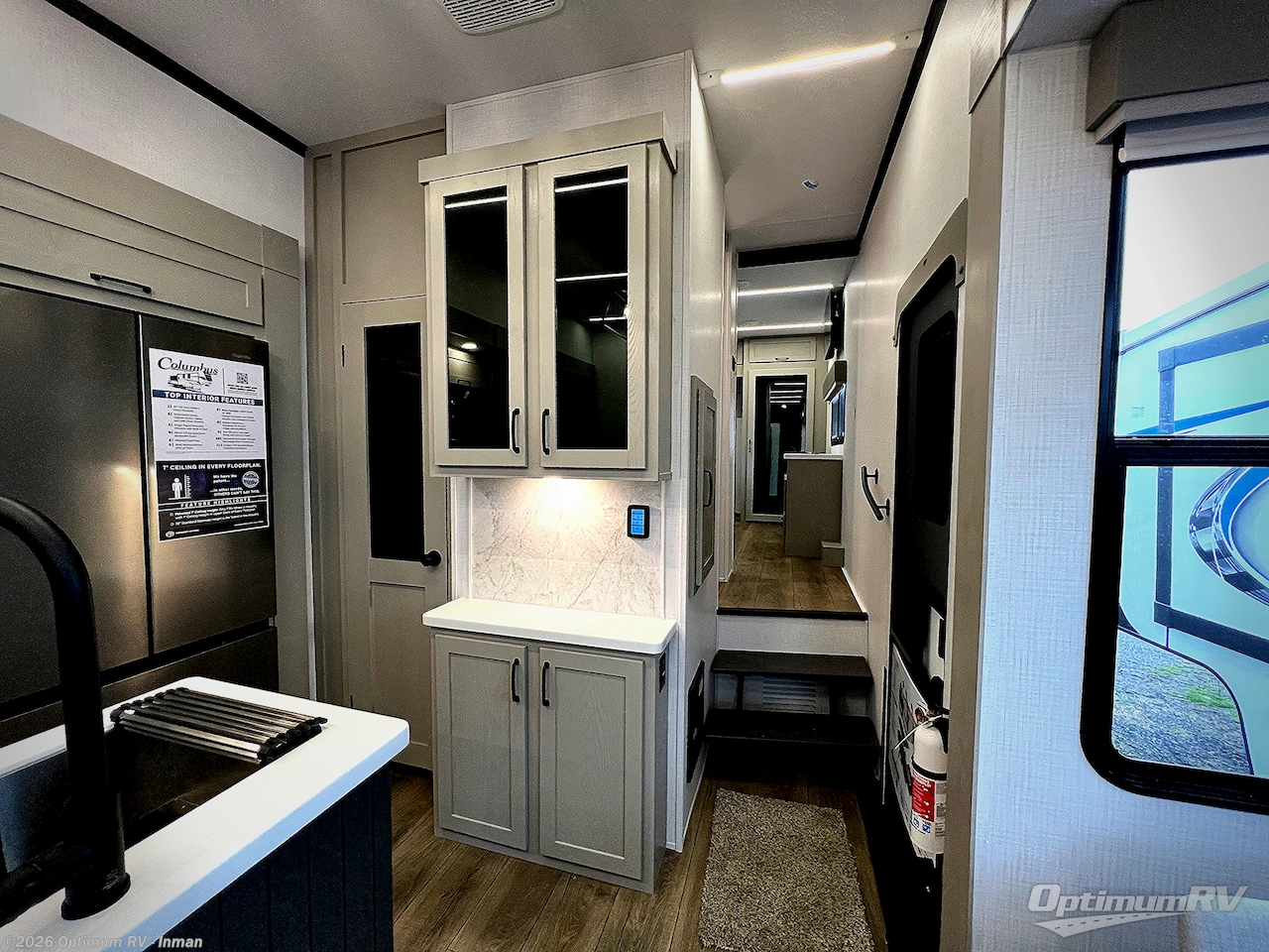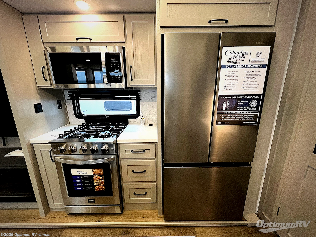 Experience a different camping life with residential furnishings and high end features in each one of these Palomino Columbus fifth wheels! The 101" wide body lets you walk around more throughout and the all-welded aluminum-frame superstructure has a snap-in ceiling molding to hold up through every adventure. Don't leave any of your gear behind either when you can easily store it in the climate controlled drop frame storage area. On the exterior, you'll find a heated utility convenience center, an outside sprayer to keep the dirt outside where it belongs, and magnetic compartment door holds to keep them from falling on you as you grab your items. Plus, there are some modern features that will really seal the deal like the Wi-Fi Booster with 4G LTE capability prep, upgraded true solid-surface countertops, power theater seating with USB charging, and a 260W solar panel for off-grid camping!