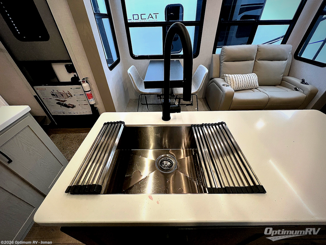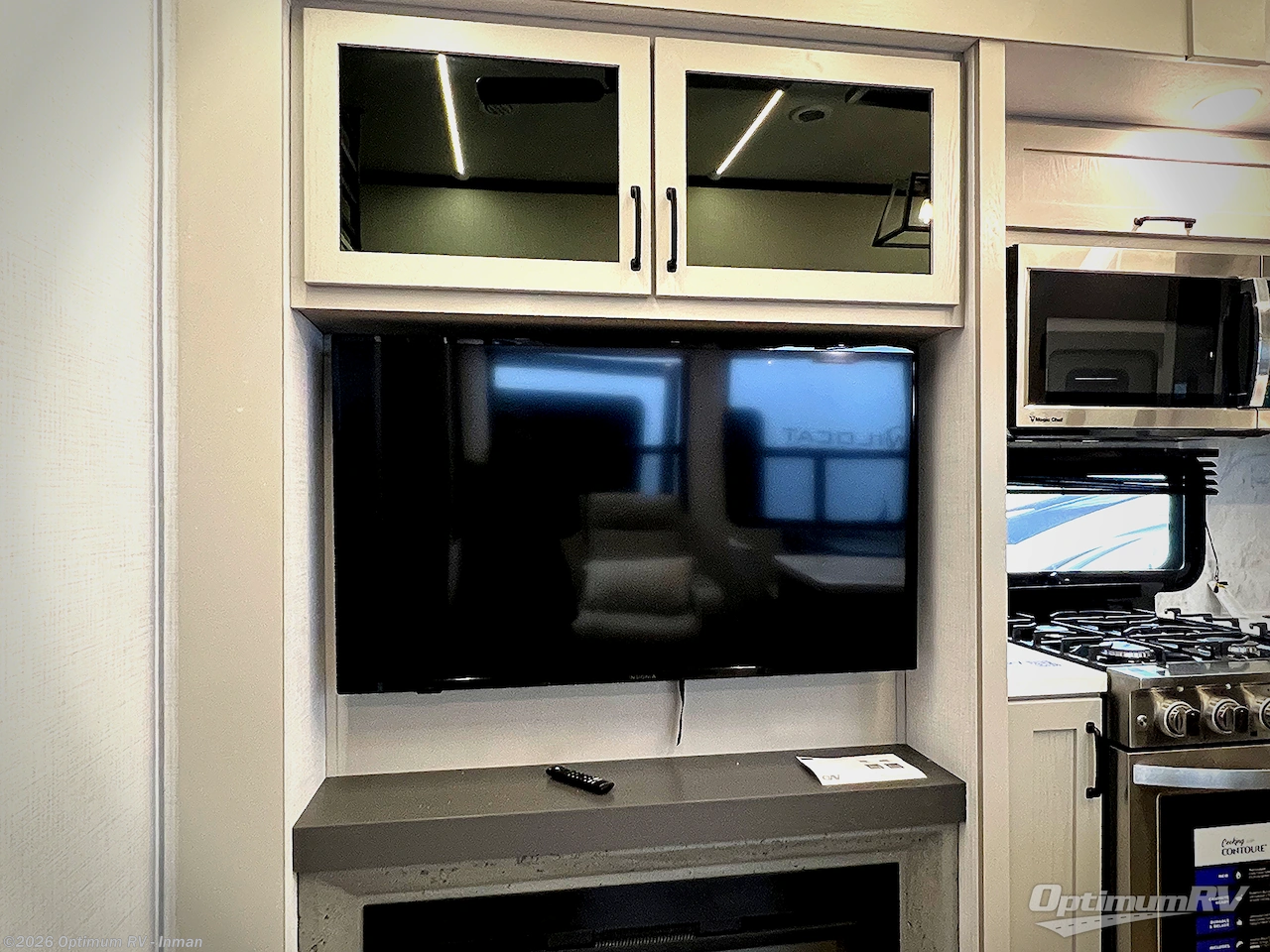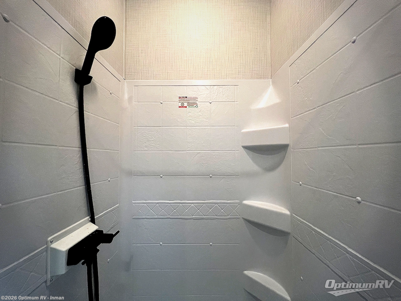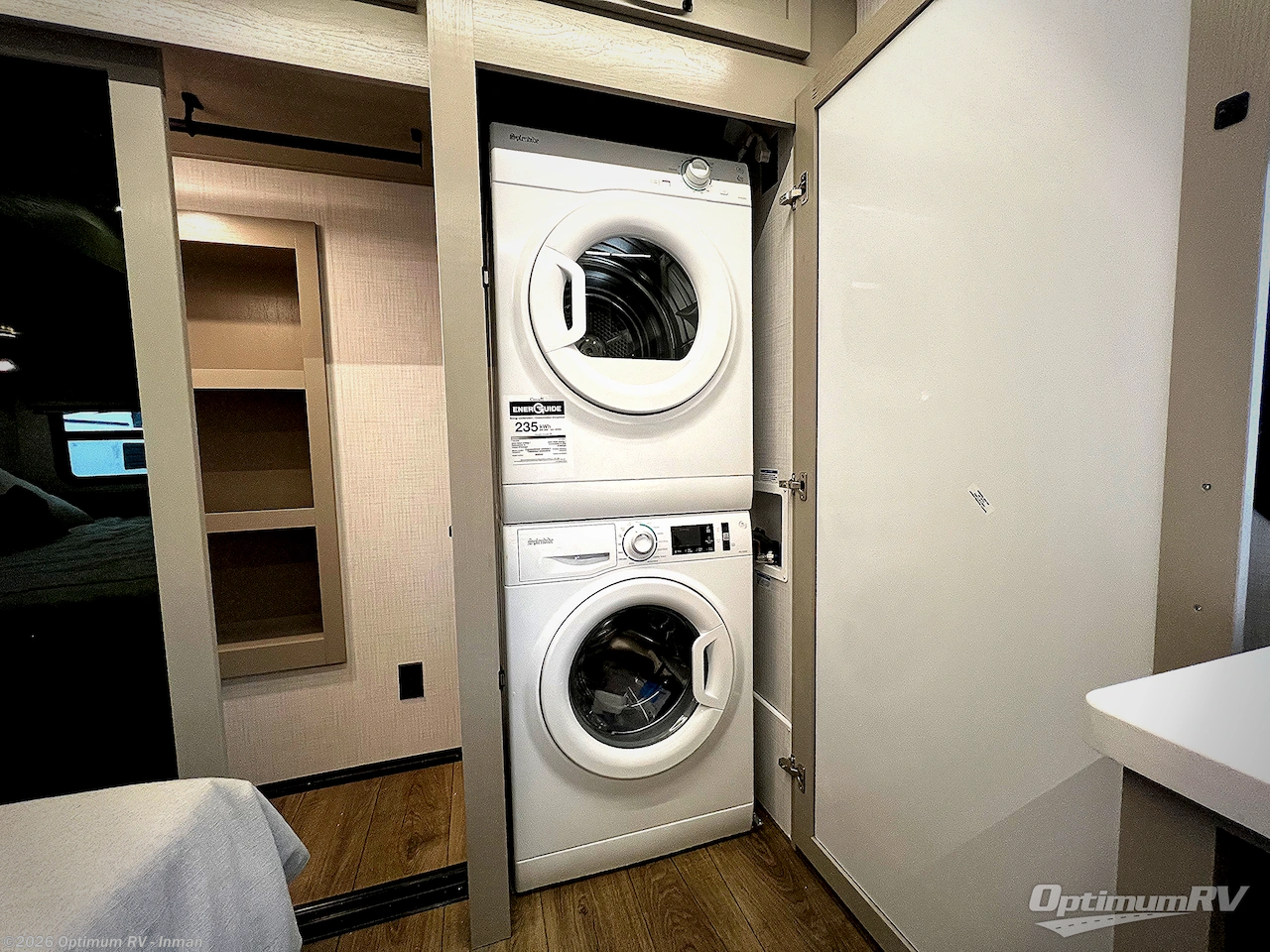 Experience a different camping life with residential furnishings and high end features in each one of these Palomino Columbus fifth wheels! The 101" wide body lets you walk around more throughout and the all-welded aluminum-frame superstructure has a snap-in ceiling molding to hold up through every adventure. Don't leave any of your gear behind either when you can easily store it in the climate controlled drop frame storage area. On the exterior, you'll find a heated utility convenience center, an outside sprayer to keep the dirt outside where it belongs, and magnetic compartment door holds to keep them from falling on you as you grab your items. Plus, there are some modern features that will really seal the deal like the Wi-Fi Booster with 4G LTE capability prep, upgraded true solid-surface countertops, power theater seating with USB charging, and a 260W solar panel for off-grid camping!