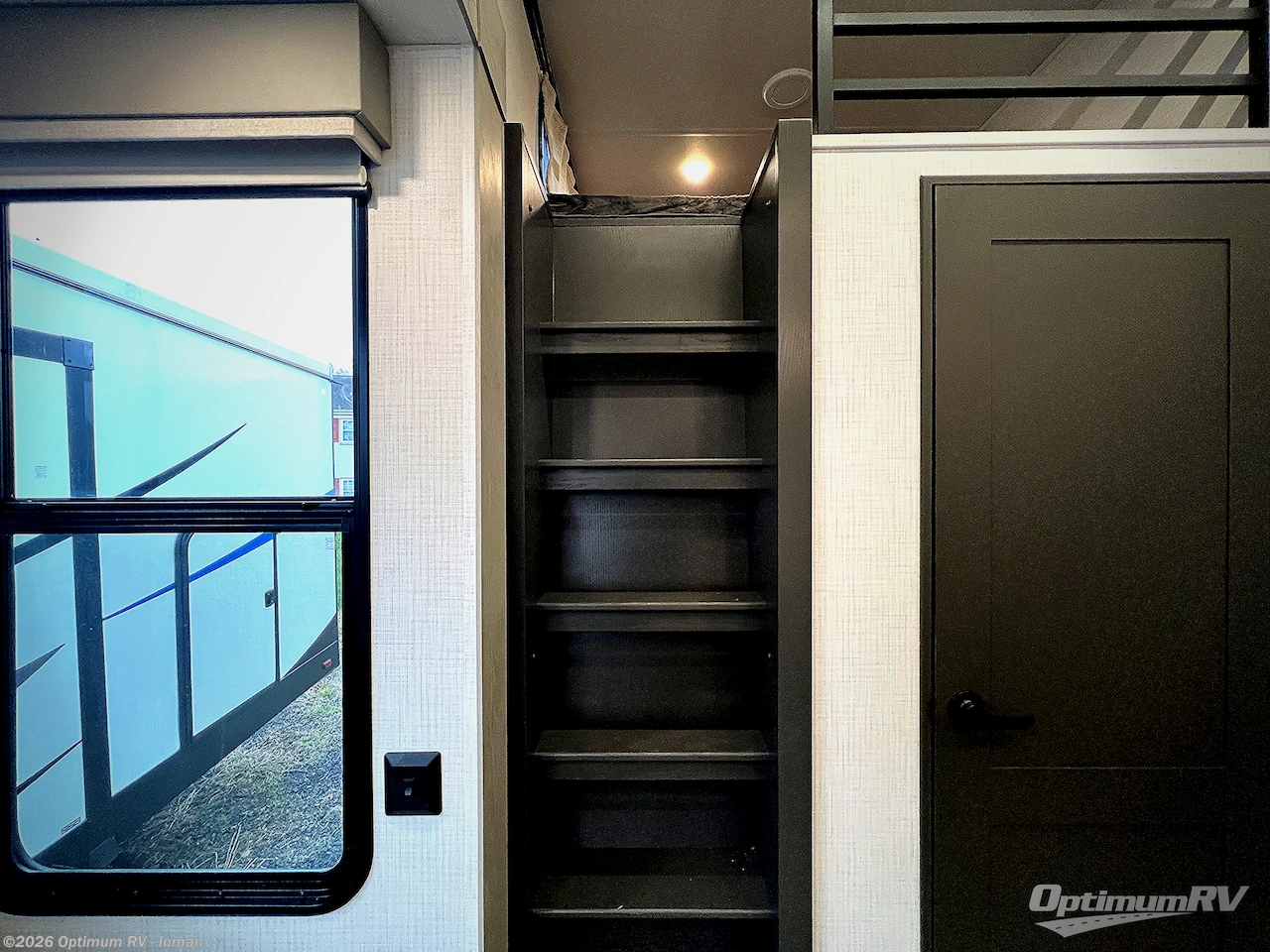Camping with friends and family just got a whole lot easier in this spacious fifth wheel! Up front, you'll find a private bedroom with a king bed slide out, a dresser, a wardrobe with a shelf, plus washer and dryer prep if you plan to go full-time. The master bedroom towards the back includes a queen bed slide out, a wardrobe and a dresser, plus a full rear bath with a unique rear entry door. There is also a loft bed with a ladder above this rear room for added sleeping or storage space! Everyone can meet in the middle kitchen and living room that includes a table and chairs, theater seat, kitchen island, and an entertainment center with a fireplace. There is even a pantry, hutch, and 3-door refrigerator for ample storage. You don't want to miss out on this fifth wheel!