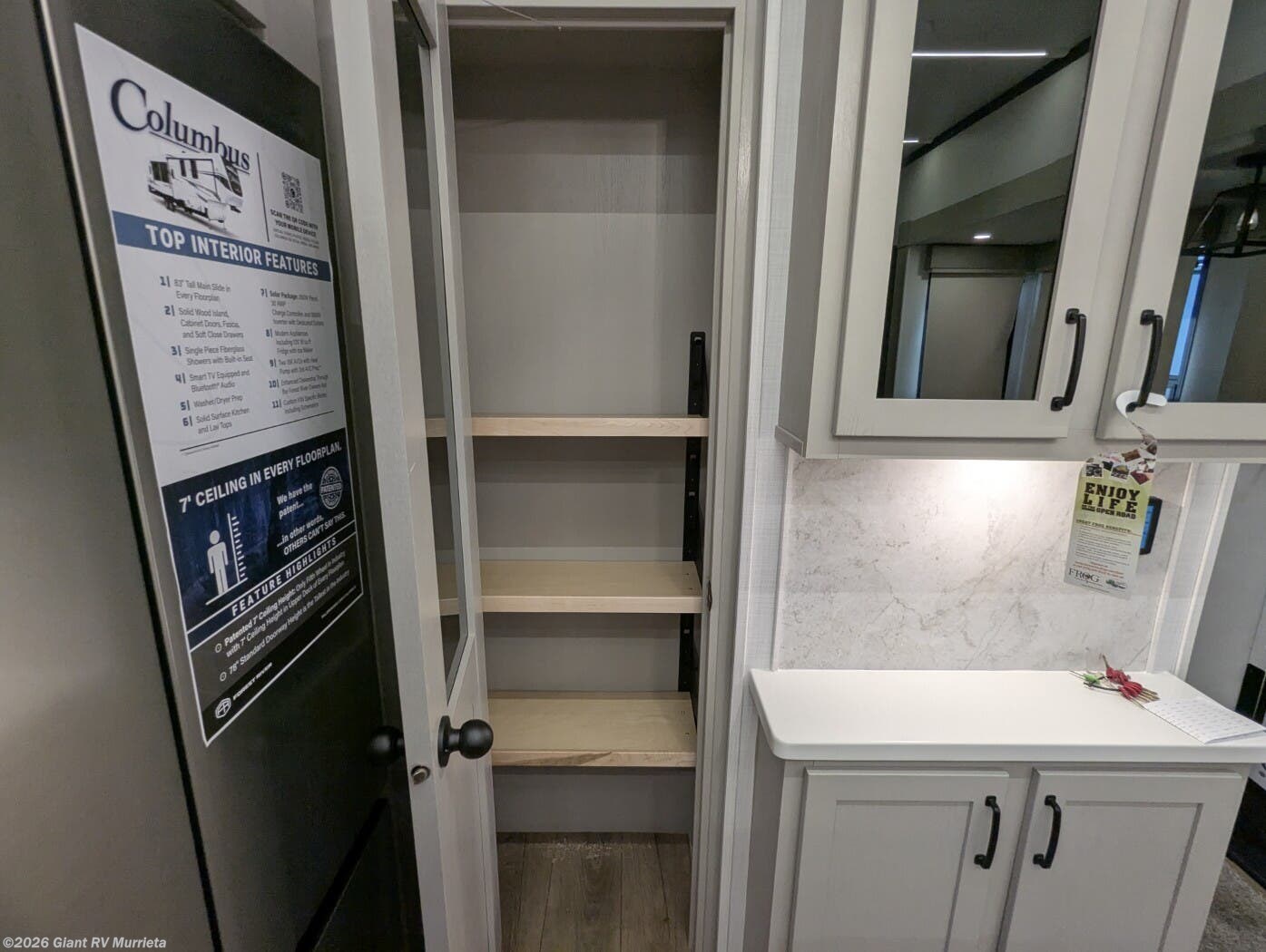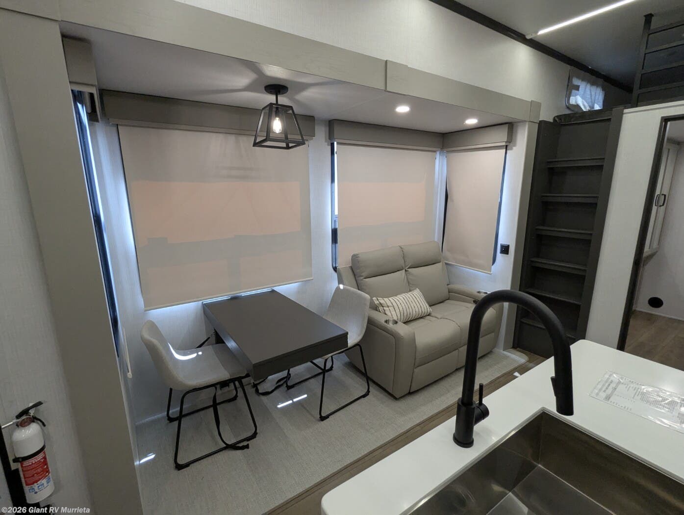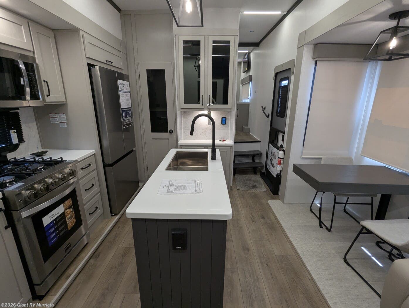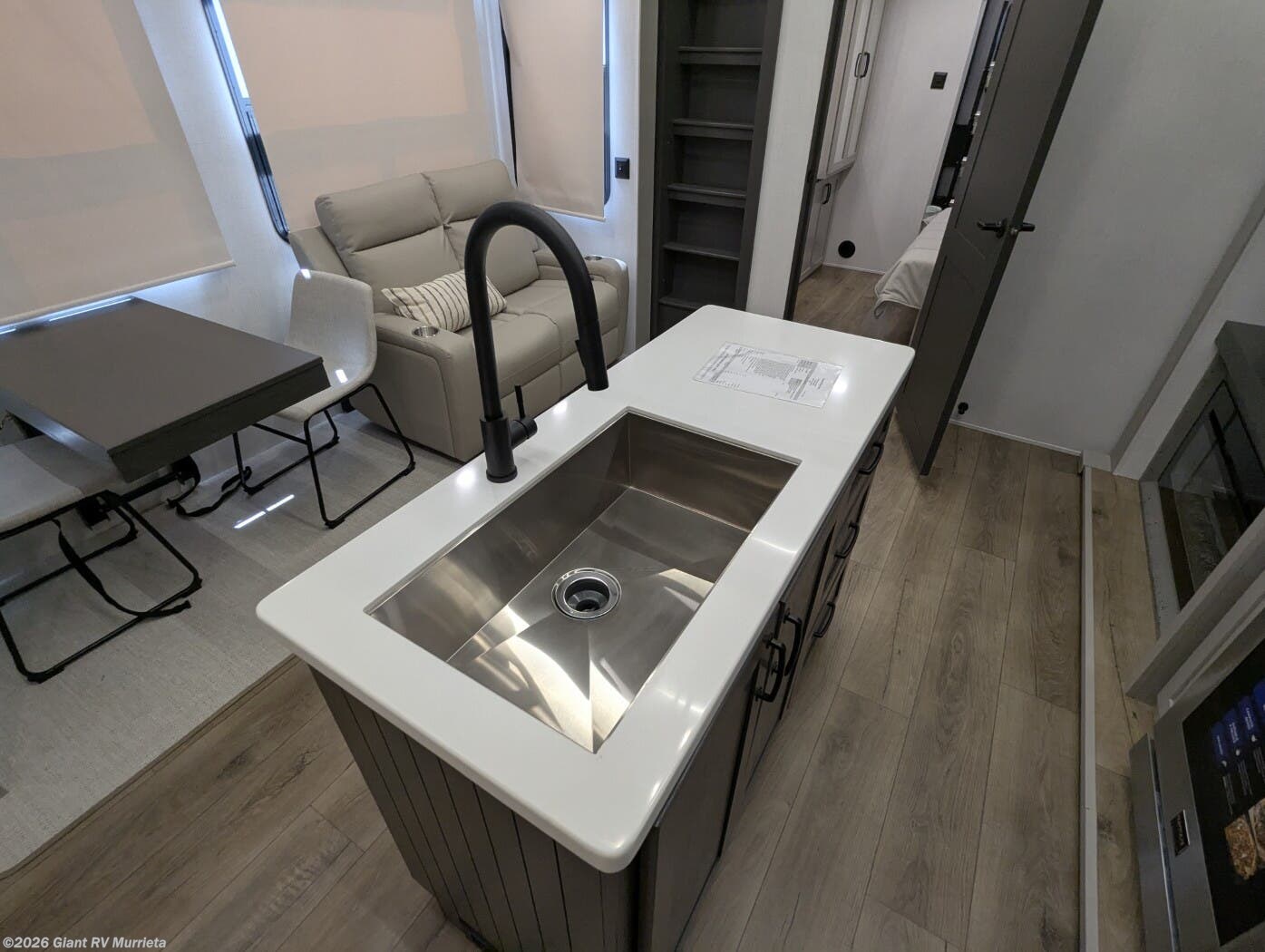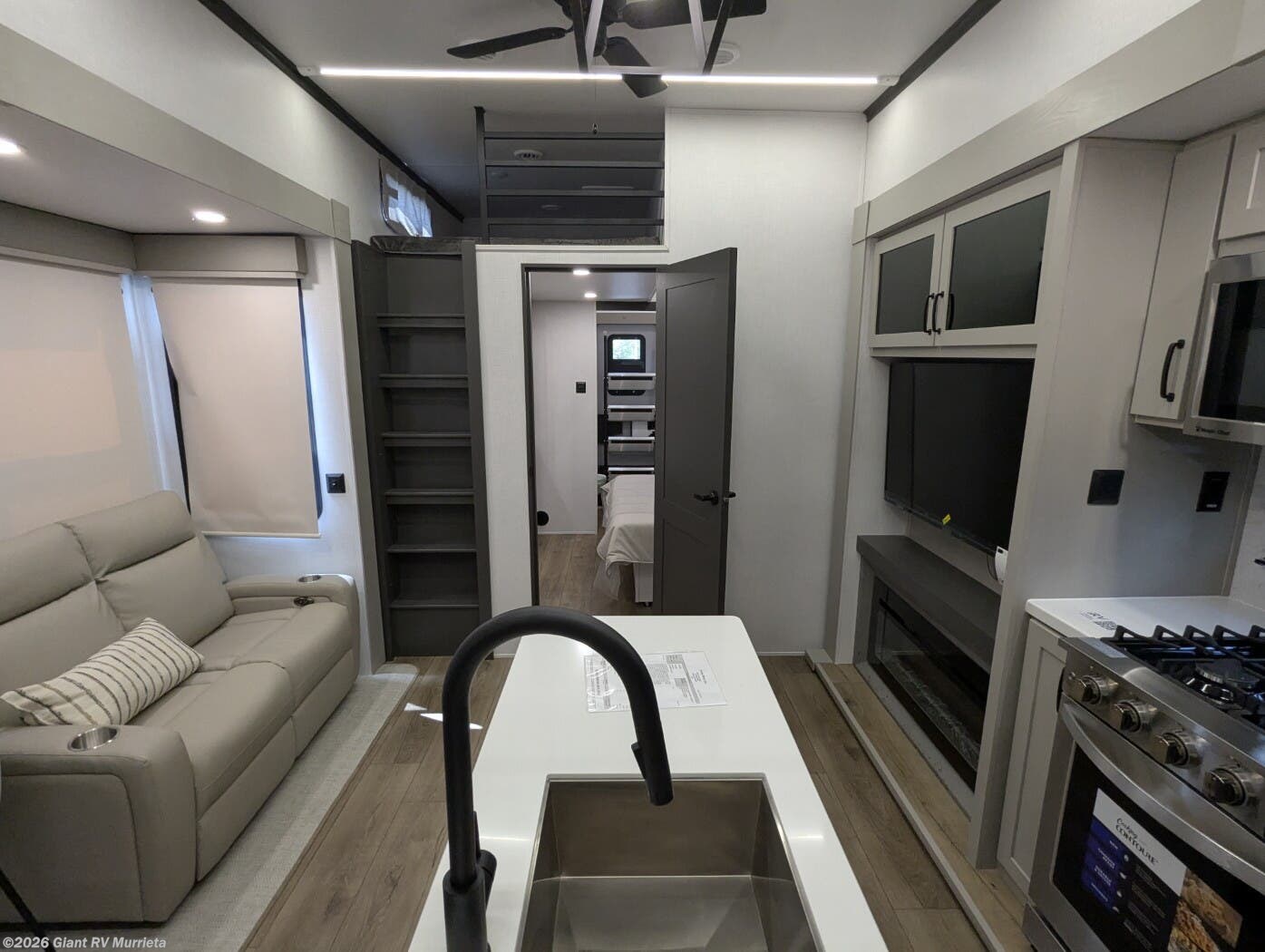 - Central Living Area: Theater seating, kitchen island for RV camping