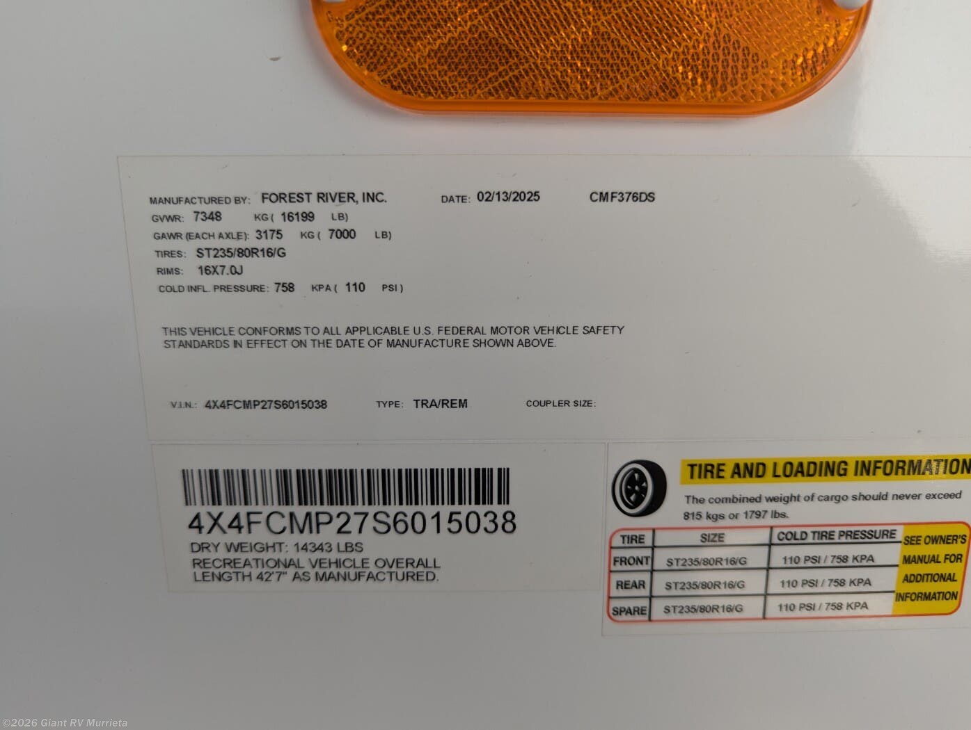 2025 Palomino Columbus 376DS Specifications