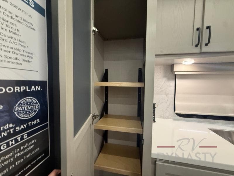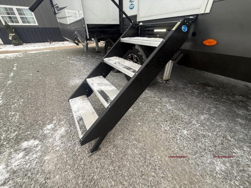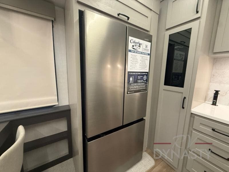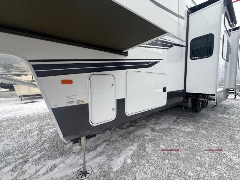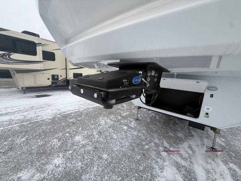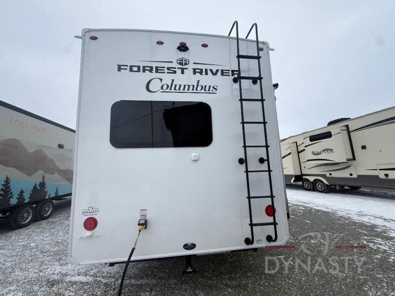 Experience a different camping life with residential furnishings and high end features in each one of these Palomino Columbus fifth wheels! The 101" wide body lets you walk around more throughout and the all-welded aluminum-frame superstructure has a snap-in ceiling molding to hold up through every adventure. Don't leave any of your gear behind either when you can easily store it in the climate controlled drop frame storage area. On the exterior, you'll find a heated utility convenience center, an outside sprayer to keep the dirt outside where it belongs, and magnetic compartment door holds to keep them from falling on you as you grab your items. Plus, there are some modern features that will really seal the deal like the Wi-Fi Booster with 4G LTE capability prep, upgraded true solid-surface countertops, power theater seating with USB charging, and a 260W solar panel for off-grid camping!