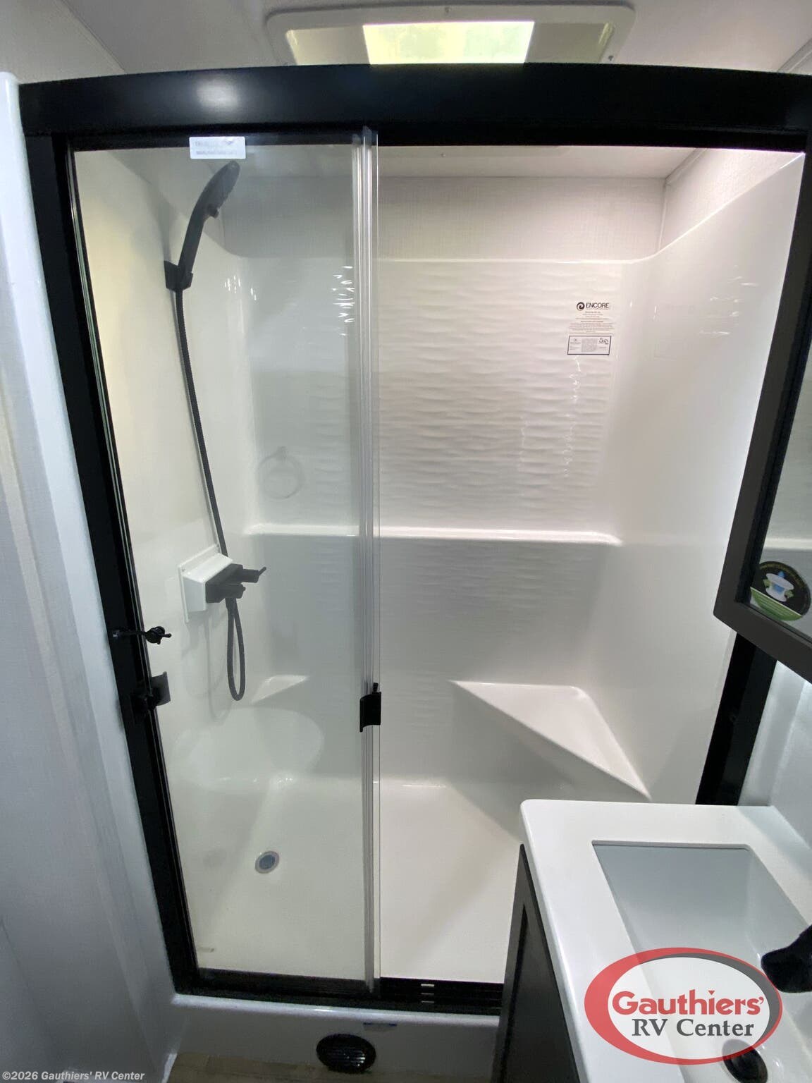 - Insulated construction, exterior awning with speakers and external shower