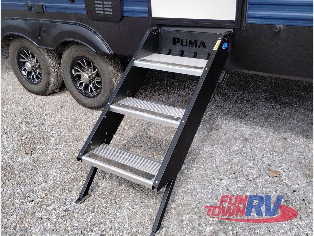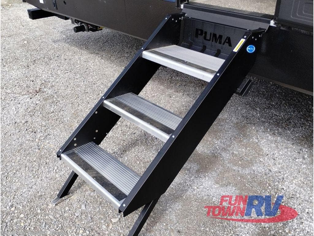 If you're looking for family-fun adventure then you need one of these Palomino Puma fifth wheels or travel trailers! They are built rugged, easy to tow, and jam packed with features. The Darco wrapped underbelly will protect your units vitals through every season and the AlphaPly roofing membrane covers it. They also have super lube axles and a powder coated frame. Their luxurious interiors feature a spice rack and built-in knife rack in the kitchen, USB charging ports to keep your electronics at 100%, and high density foam mattresses for a good night's rest. The required Advantage package comes with night roller shades for privacy at night, two outside speakers to crank up the tunes while you play cornhole, and an outside shower to keep the dirt outside where it belongs, plus so much more!