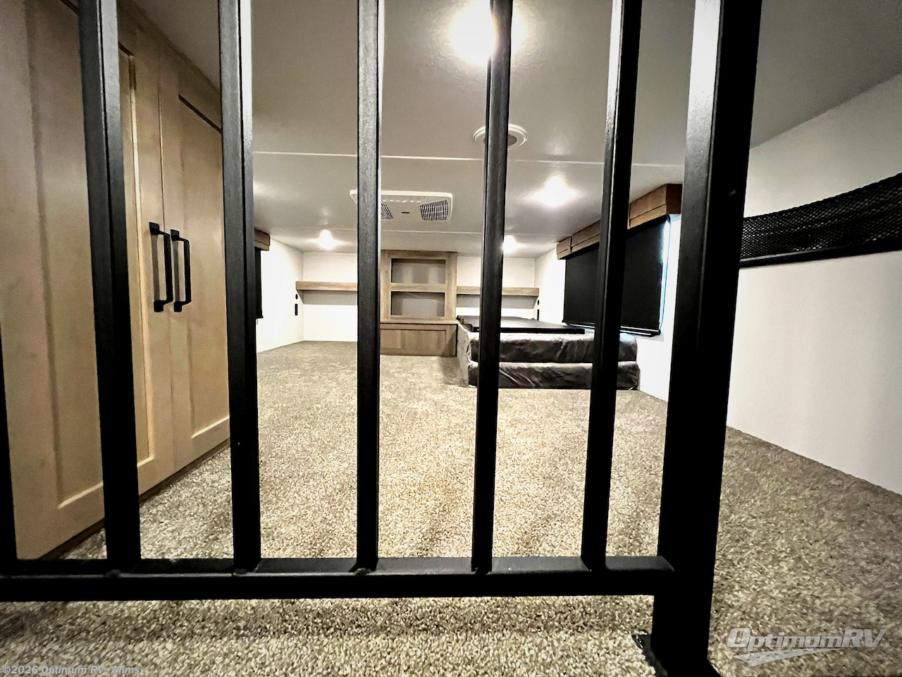 Wherever your destination may be, you can be sure to enjoy it to the fullest with this trailer in tow! With two entry doors, you can enter in through the rear private bedroom or the main living area. The bedroom includes a king bed slide out, a wardrobe/closet to keep your clothes organized, plus a closet with the option to add washer and dryer prep. Just outside this room are steps that lead to the large loft area with a 58" x 58" bunk mat and a cabinet on one side, plus two 32" x 69" bunk mats on the other. There is also a cabinet and a wardrobe/closet for plenty of storage space. Once you've headed back downstairs, you can relax on the dual recliners, front sofa, or free-standing table with a bench and two seats. And the chef of your group will love the kitchen with its residential style refrigerator and pantry, kitchen island, and four burner cooktop!