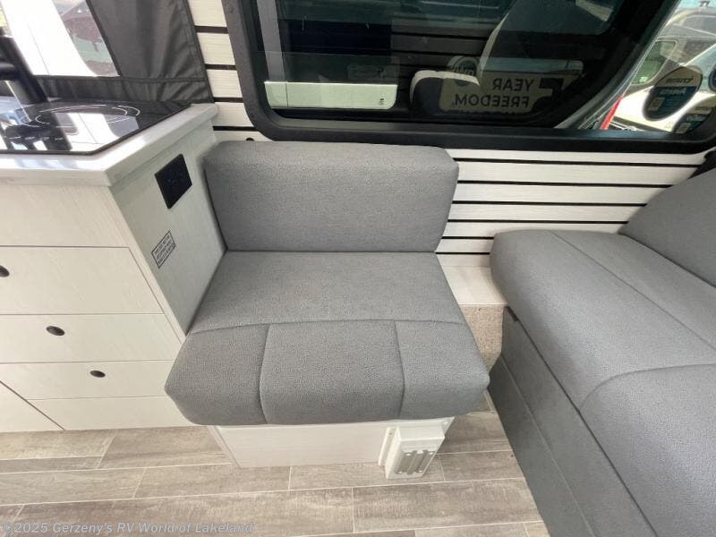 Whether you are ready to head out on a weekend camping trip or you are going to your kids' sporting events, this Ascent Class B diesel motorhome has the ideal accommodations for you. The rear power sofa with seat belts easily convert into twin beds or a 70" x 72" queen-size bed, plus the Lagun table mount system turns 360 degrees to allow you to position it just right. The wet bath is enclosed for your privacy, plus you will appreciate the handheld showerhead for easy clean-up. When you are ready to relax for a bit, sit and watch a show on the 24" Smart LED TV, or if you want to spend more time outdoors, enjoy the shade from the power awning!