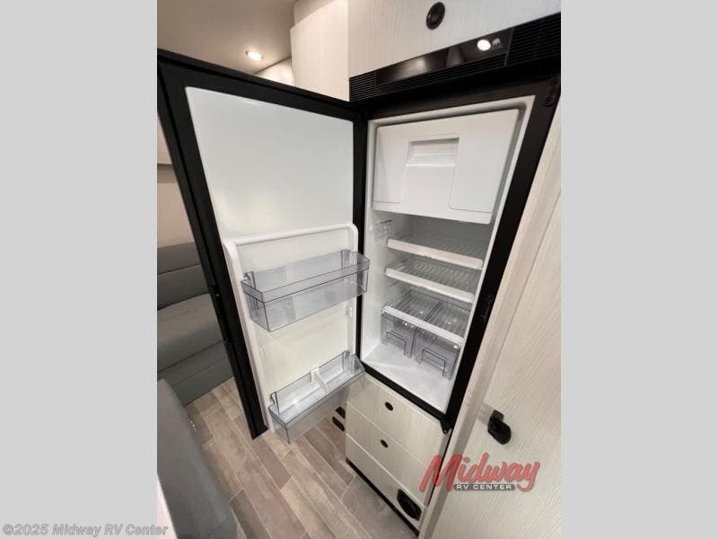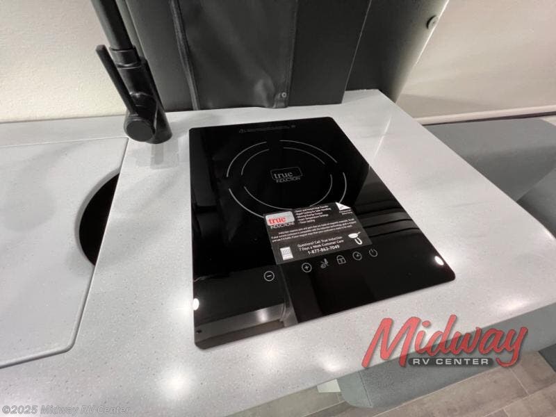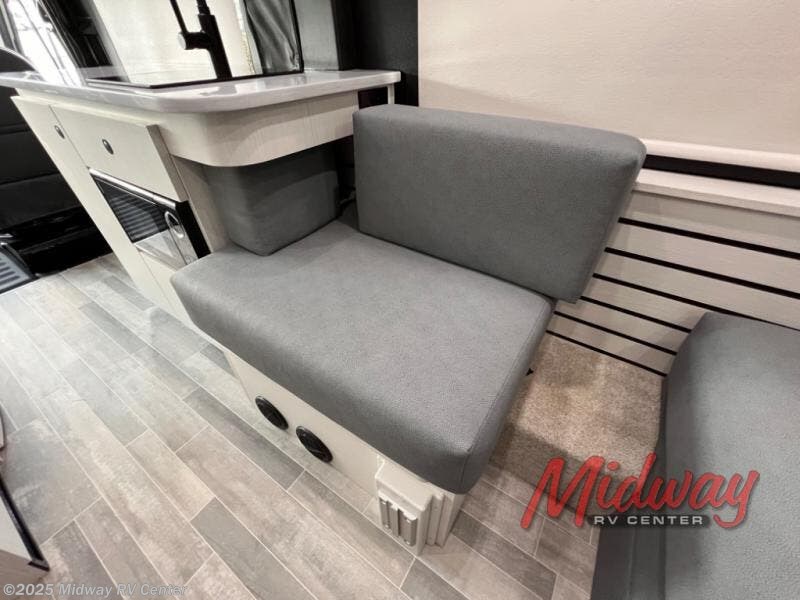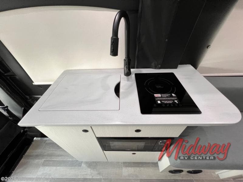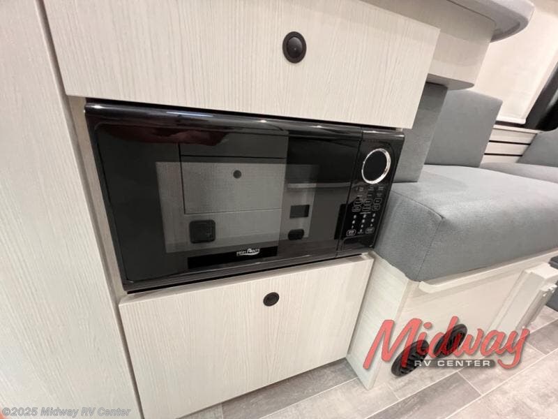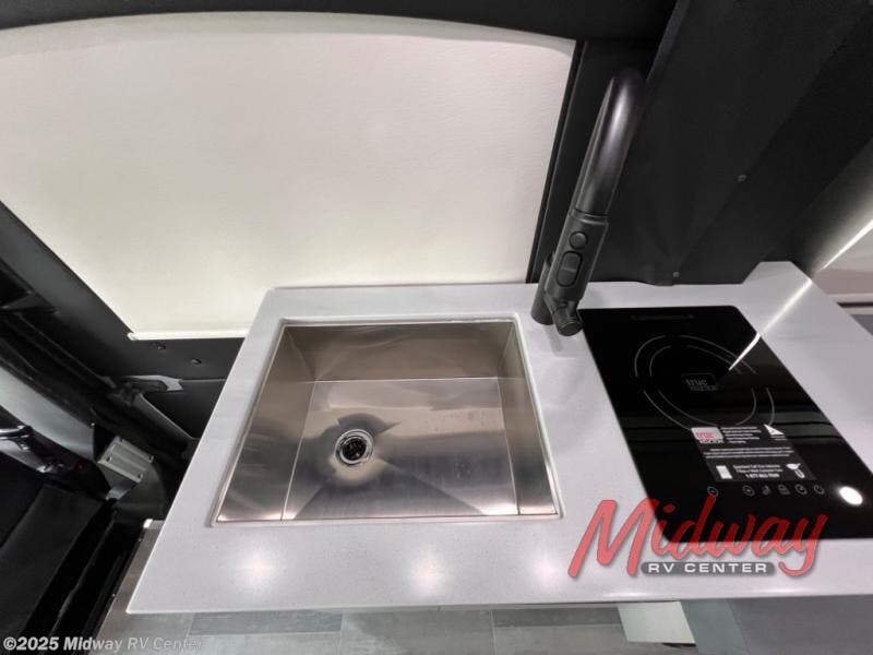 Plan to see the country in this Class B gas motorhome that includes everything you need while away from home. The power sofa with memory foam cushions will provide a great night's rest after traveling all day and the convenient wet bath with a handheld shower will allow you to clean up each morning. Prepare breakfast on the one burner induction stove top and you'll also find a microwave oven for quick meals. Food for the week can go in the 12V 3.2 cu.ft refrigerator/freezer and the overhead compartments can hold all the snacks. This model also includes a Lagun table mount system with 360 degree swivel top so you can enjoy coffee with your loved one.