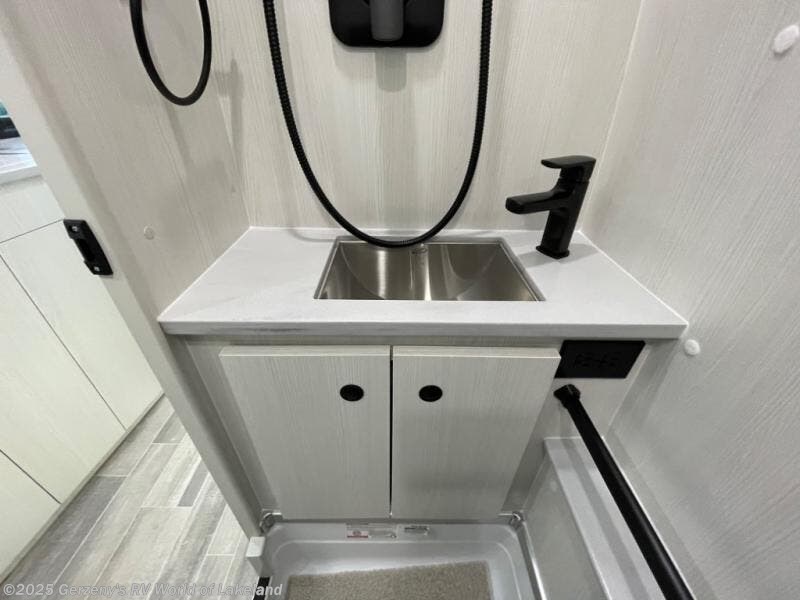 You will experience a comfortable ride in this Plateau Class B diesel motorhome with memory foam sofa cushions. The wet bath comes fully equipped with a medicine cabinet including a mirror, a Corian countertop, a towel rack, and a handheld showerhead. The exterior shower also has a handheld showerhead to make rinsing off the evidence of a fun-filled day even easier before heading inside. All of the seating throughout is covered in Ultraleather fabric, including the swiveling captain's chairs. With a generous amount of available storage in a full-size wardrobe, you can easily reach any of your hang-up clothes!